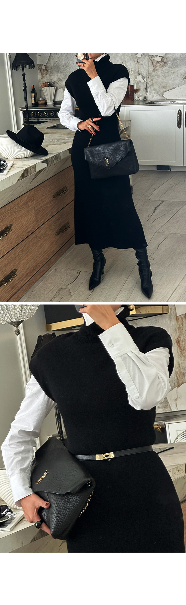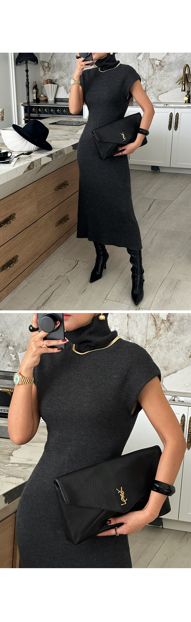 골드 주얼리·스틸레토 부츠·클러치와 함께 매치하면