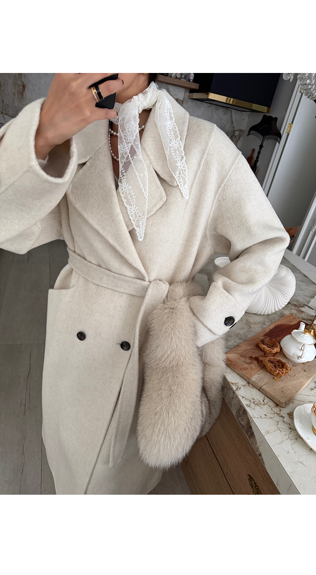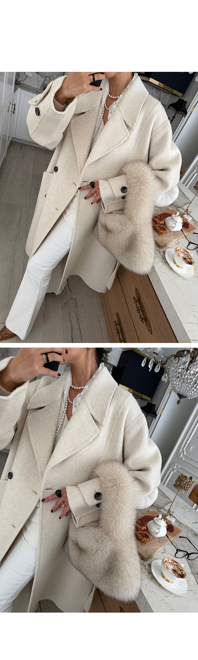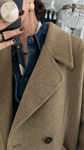 넓게 떨어지는 라펠과 자연스러운 헤어리 텍스처가