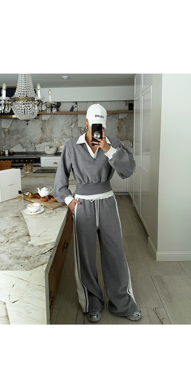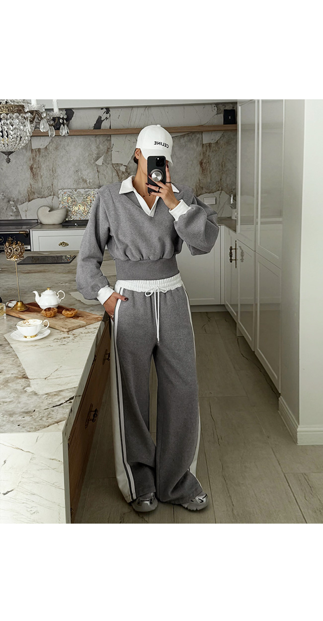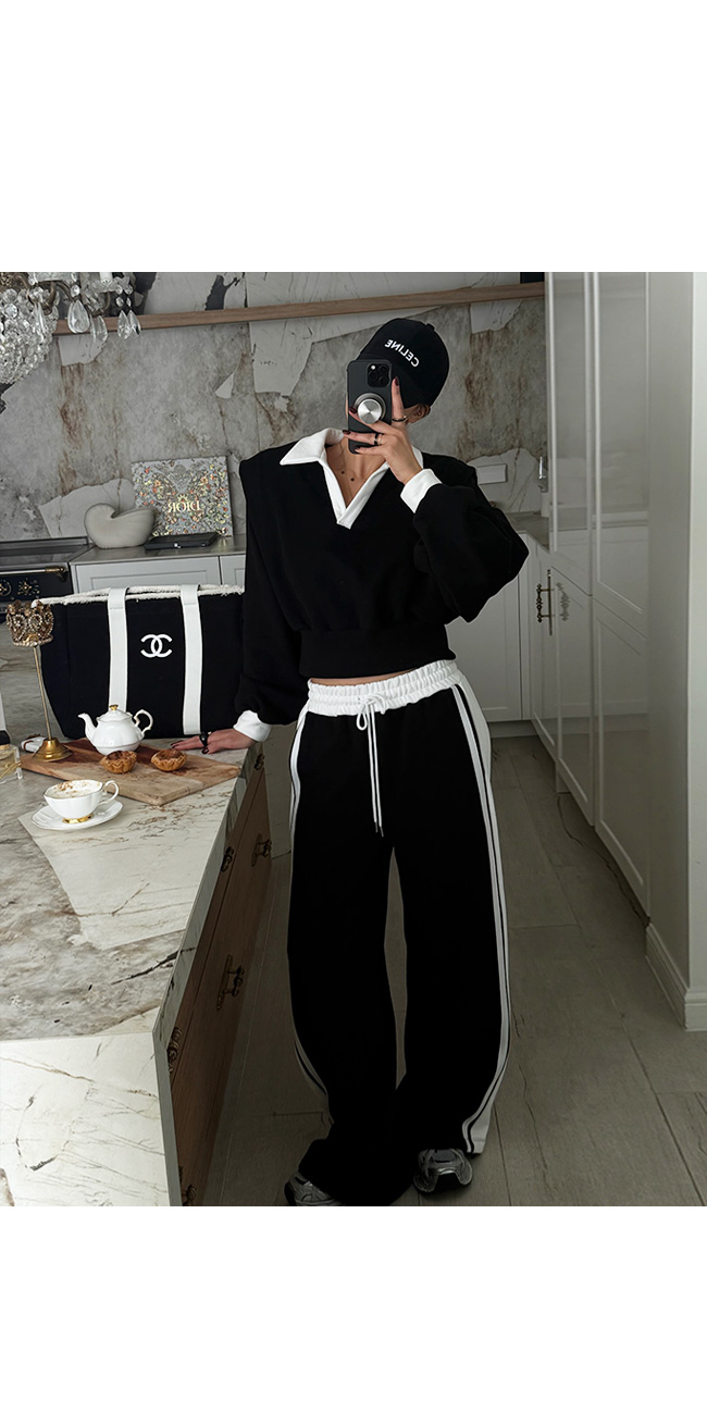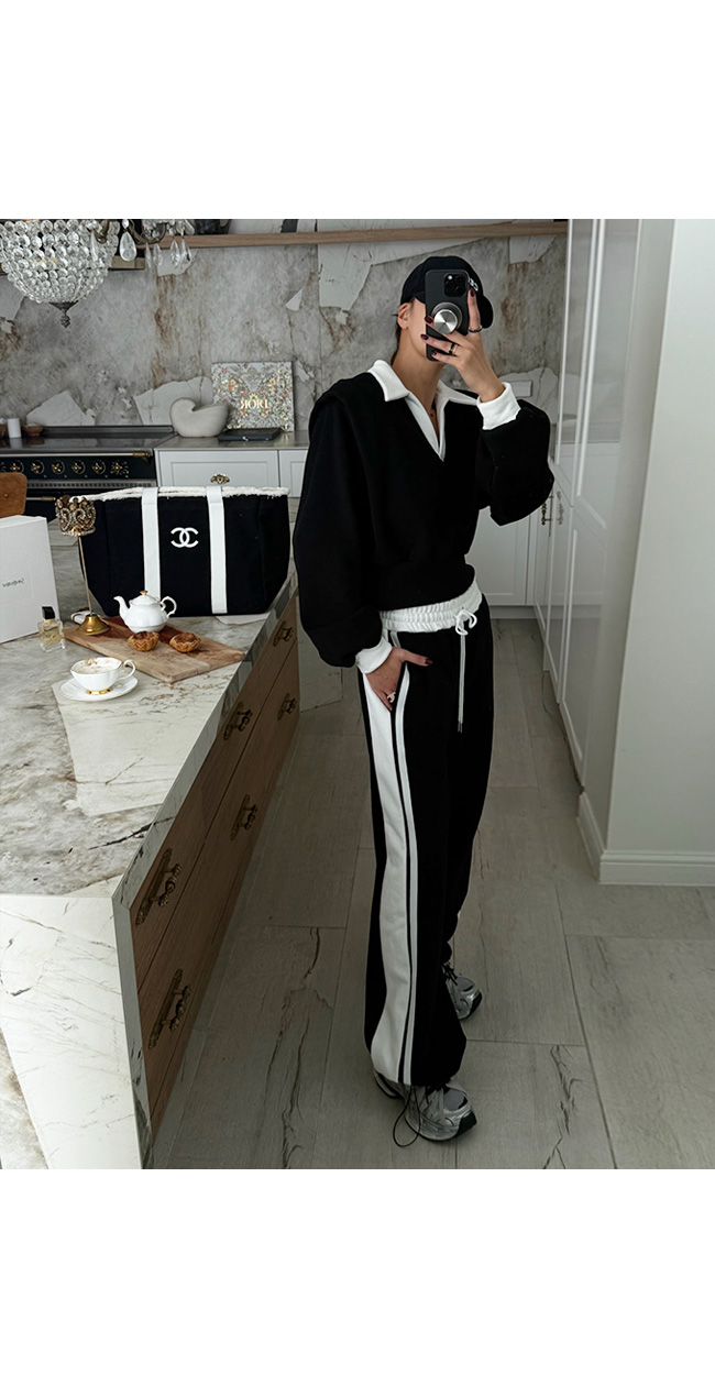 화이트 배색의 카라 & 소매 디테일이 포인트가 되어