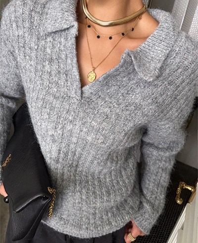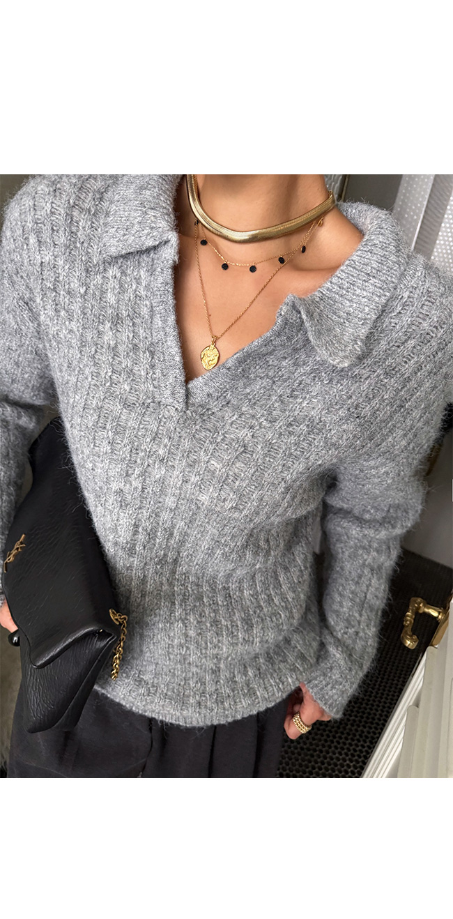 골지 짜임이 세로로 정돈된 실루엣을 만들어 주어,