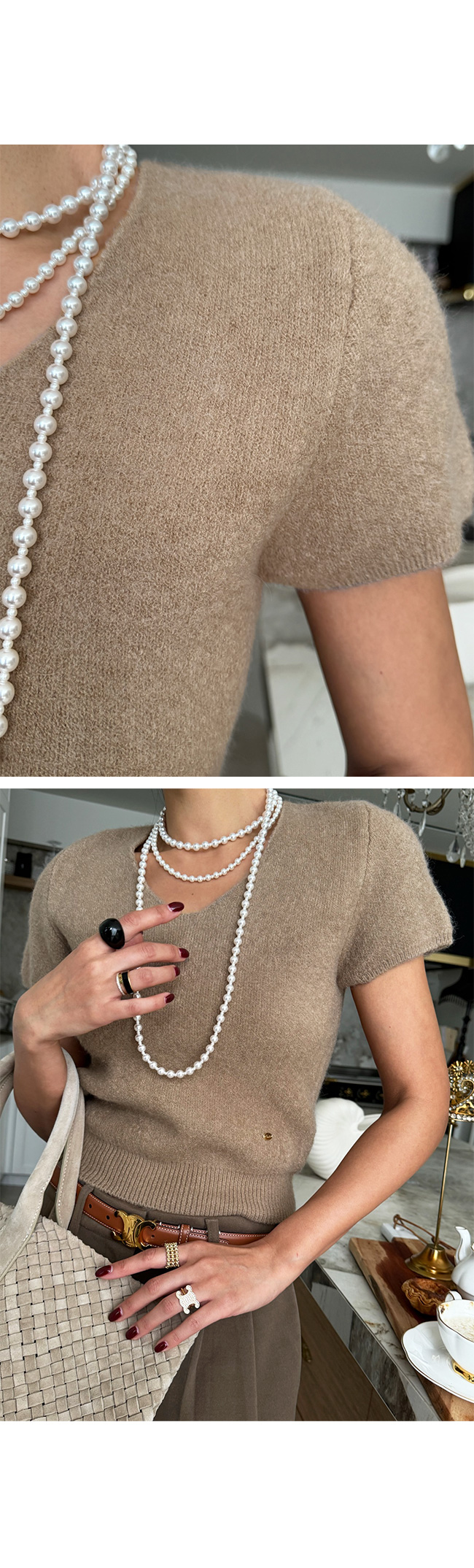 부드럽고 포슬한 텍스처가 돋보이는 반팔 니트로,