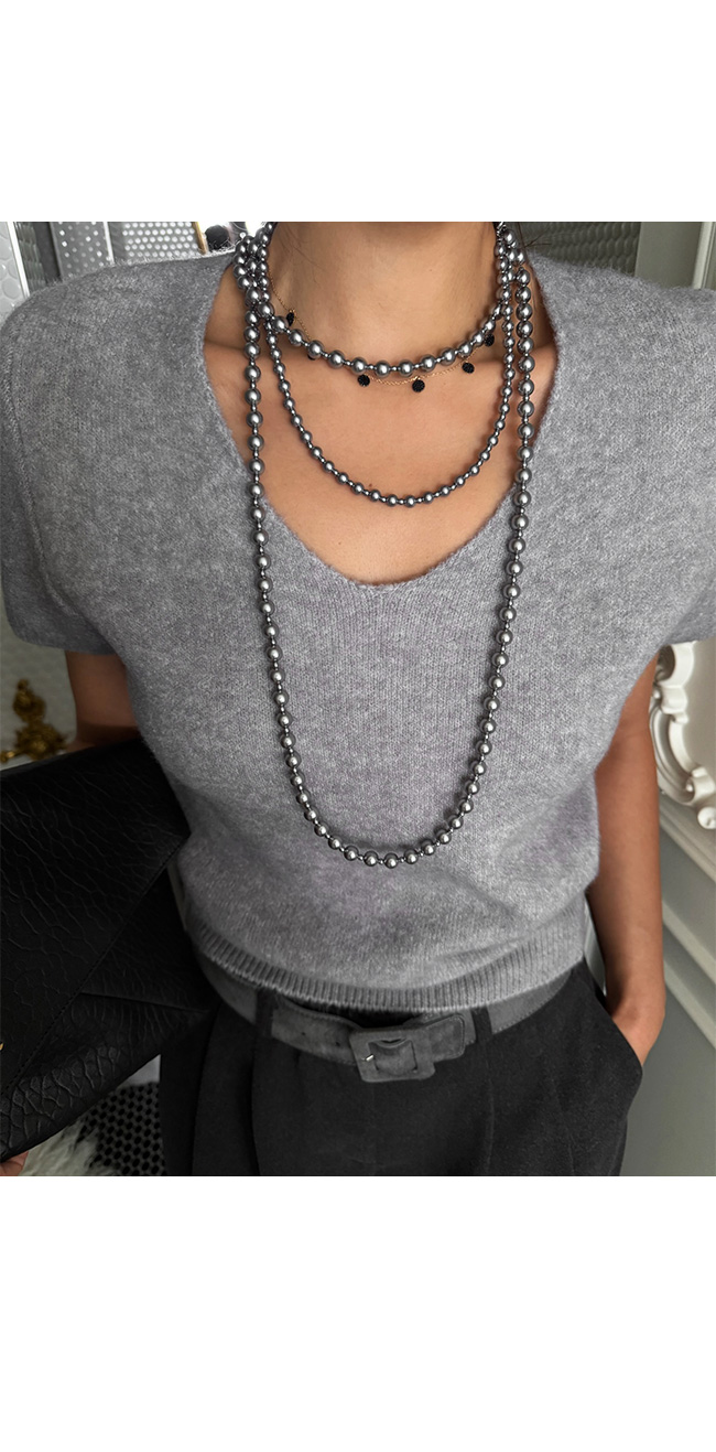 V넥 디자인이 목선을 슬림하게 정돈해주어