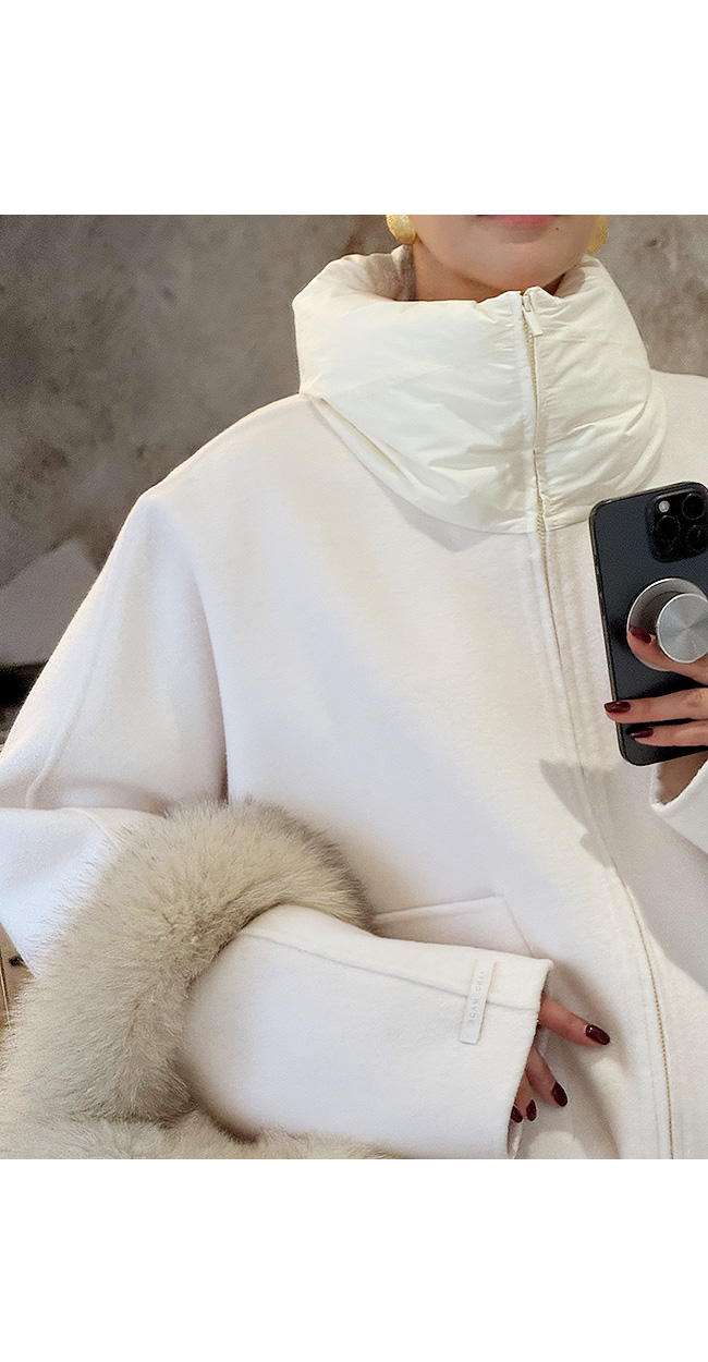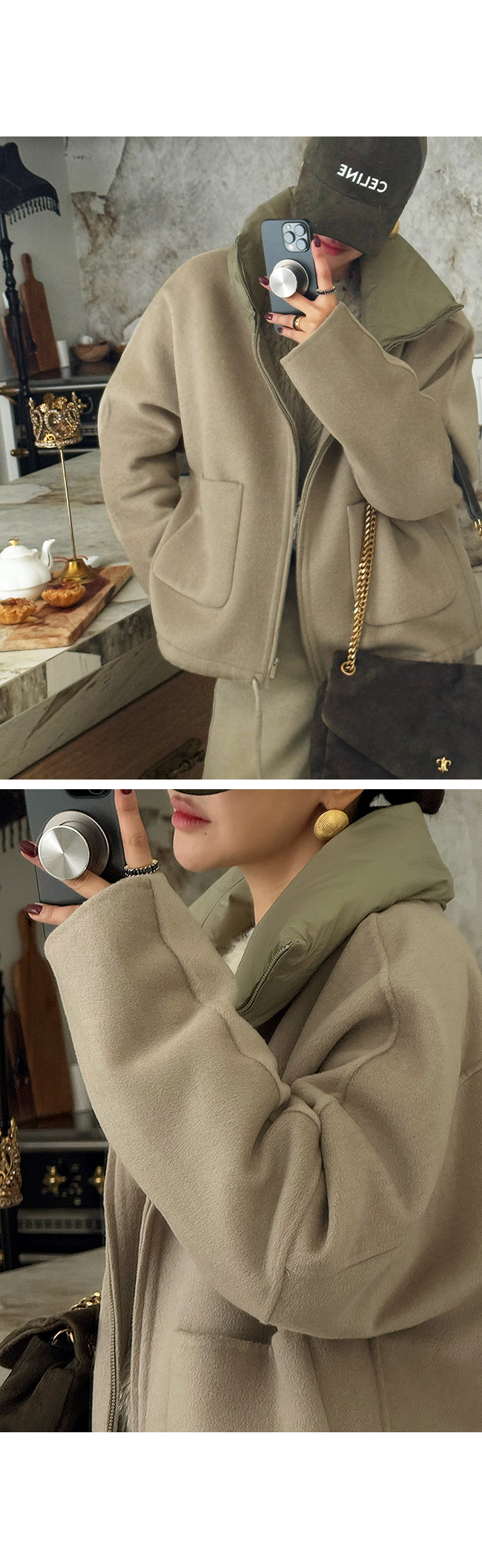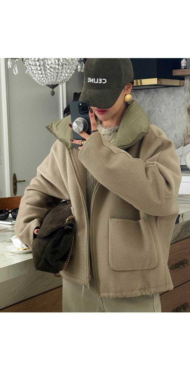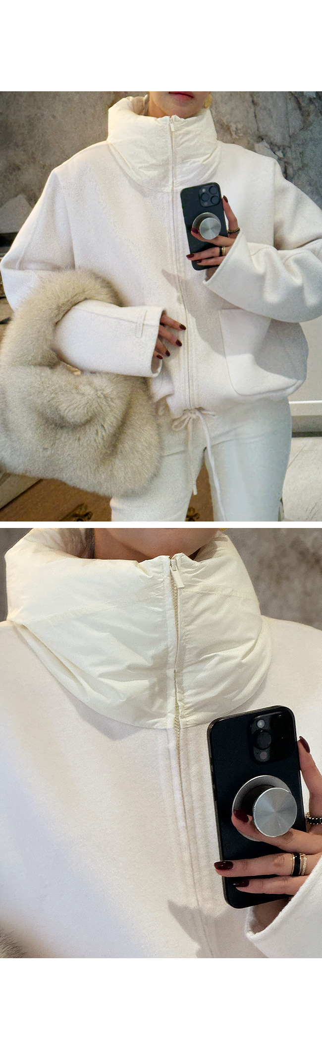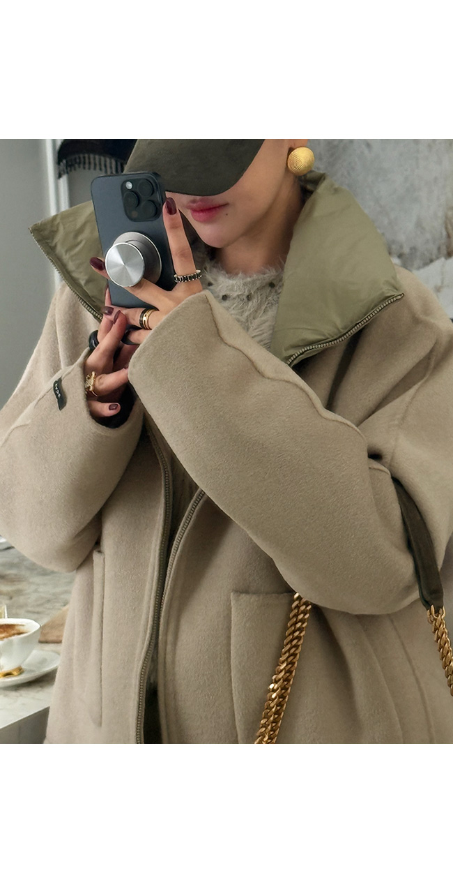 울(wool/毛料)50% + 폴리(polyester/涤纶)50% / 배색 - 나일론(nylon/尼龙)100% / 충전재(Filler/填充剂) - 웰론(wellon/羽绒棉)100%