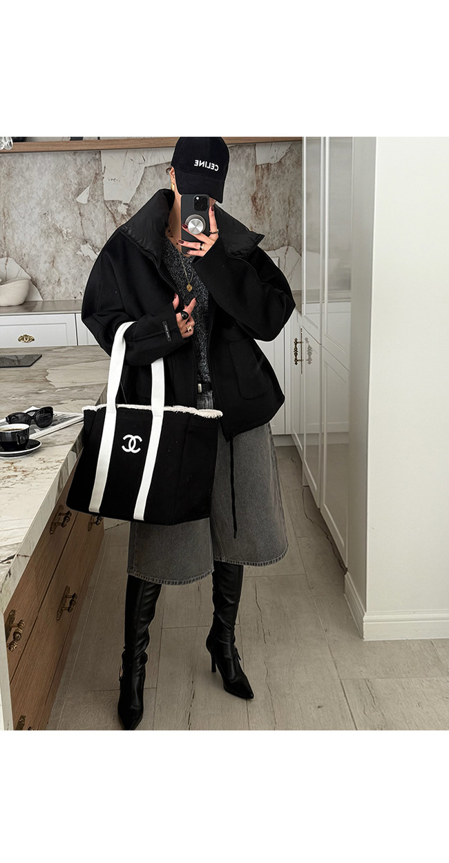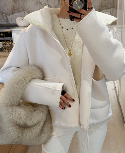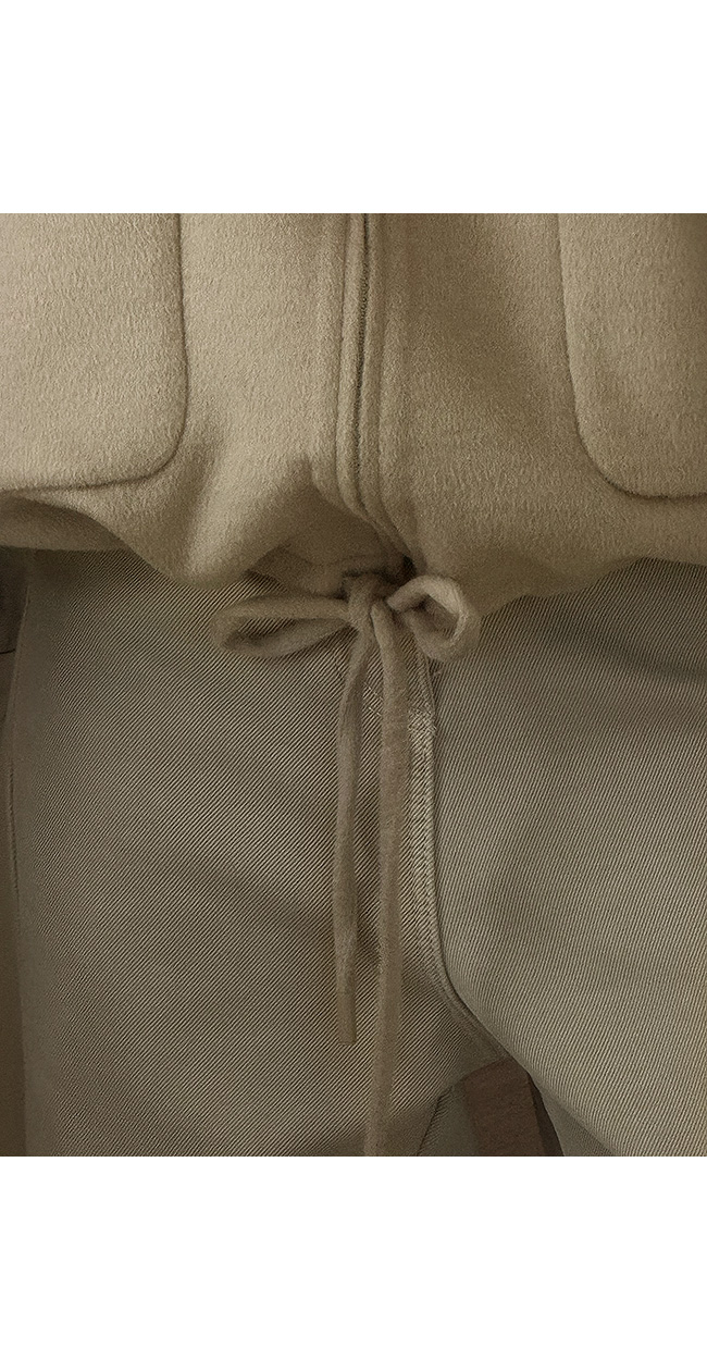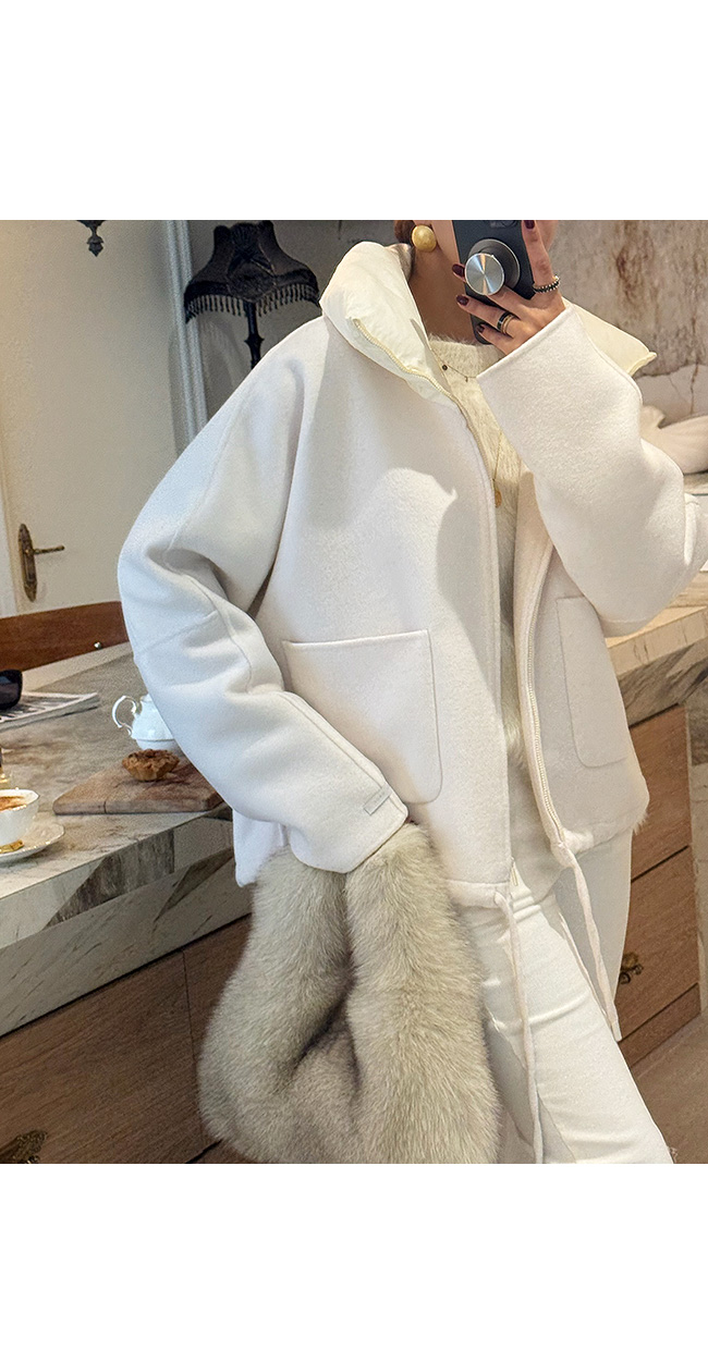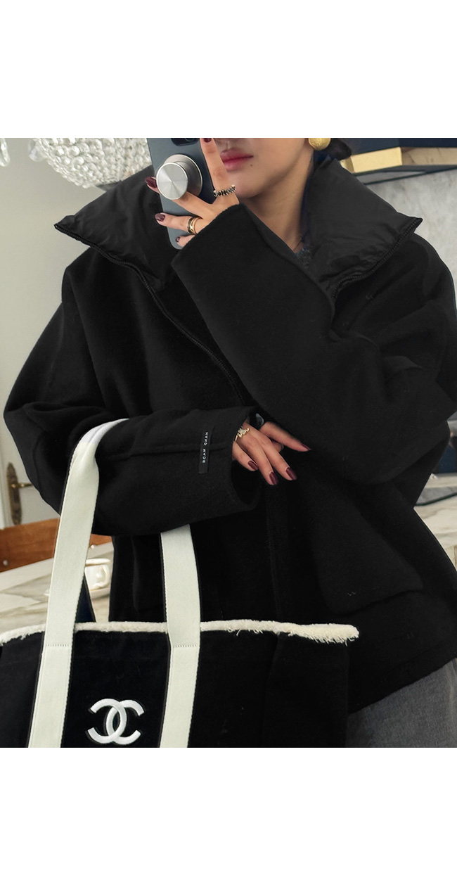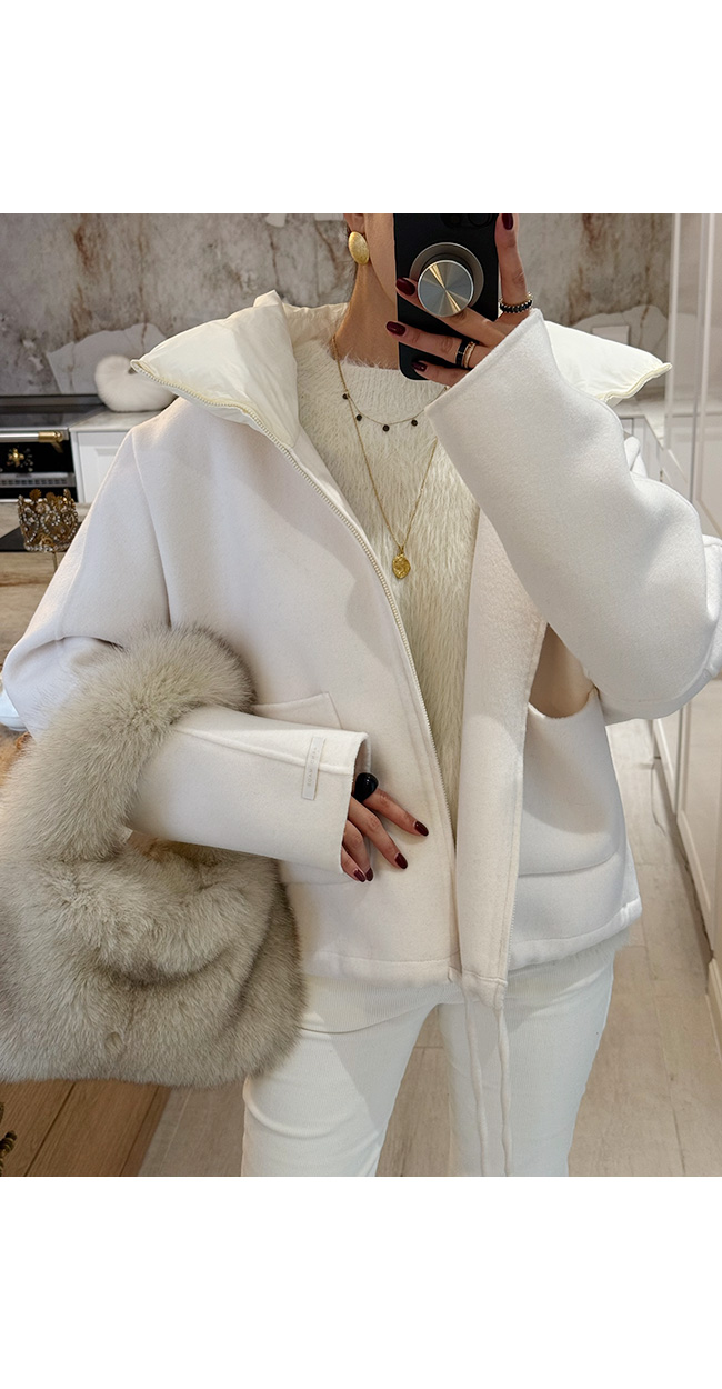 울(wool/毛料)50% + 폴리(polyester/涤纶)50% / 배색 - 나일론(nylon/尼龙)100% / 충전재(Filler/填充剂) - 웰론(wellon/羽绒棉)100%