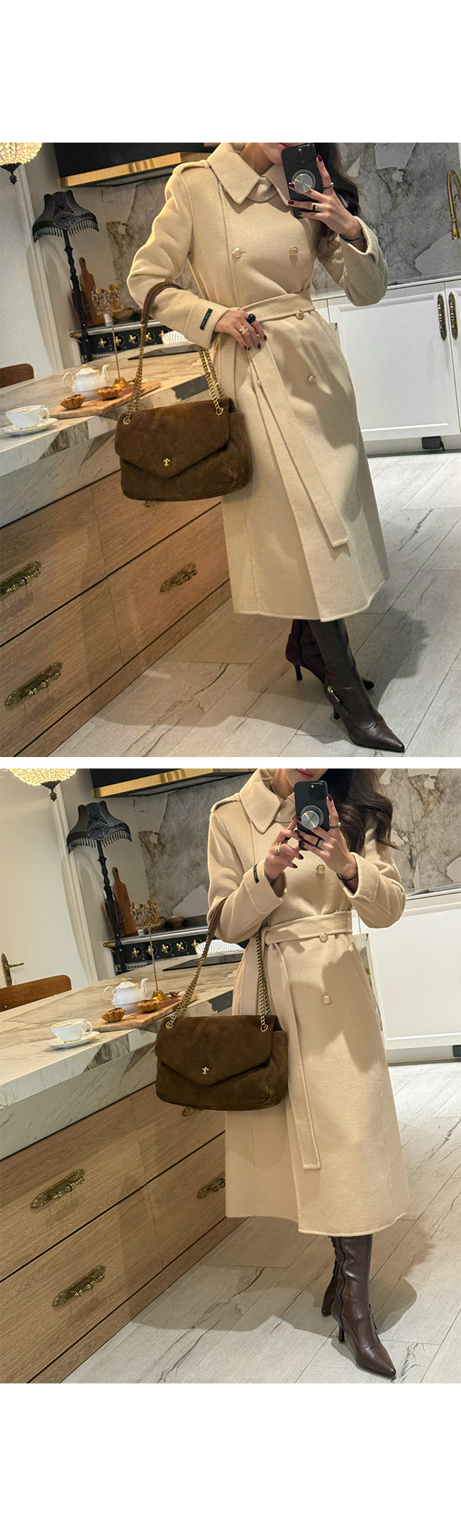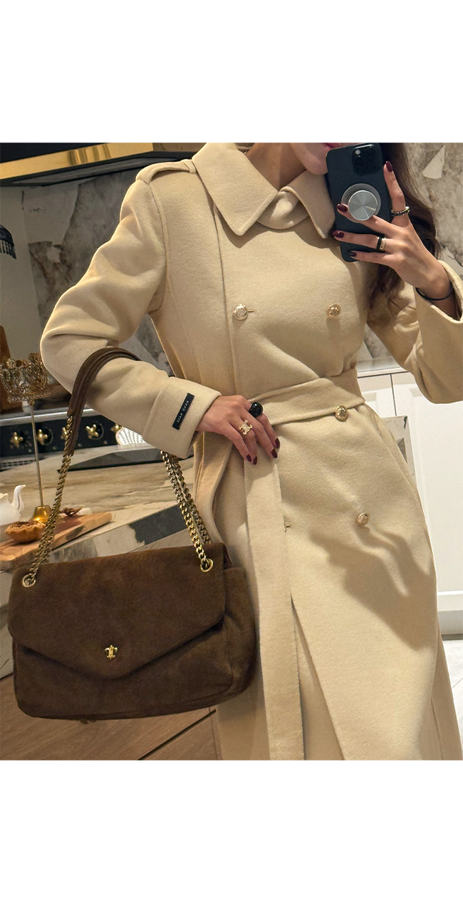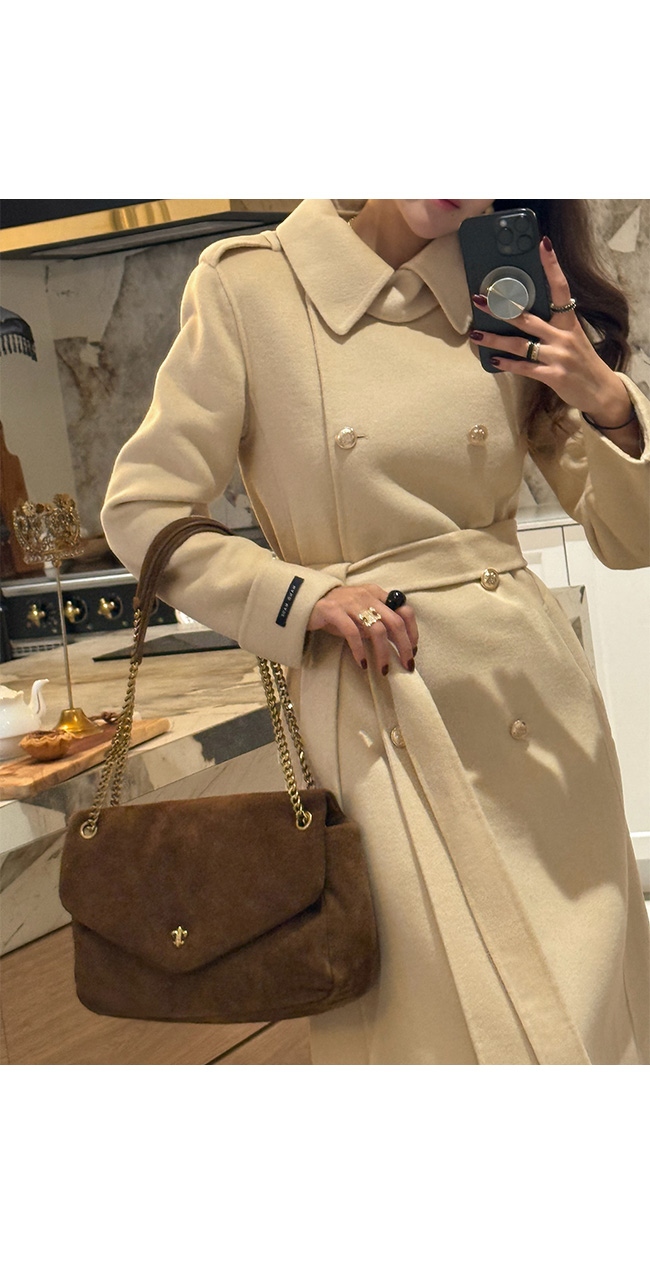 고급스러운 울 핸드메이드 더블 코트,