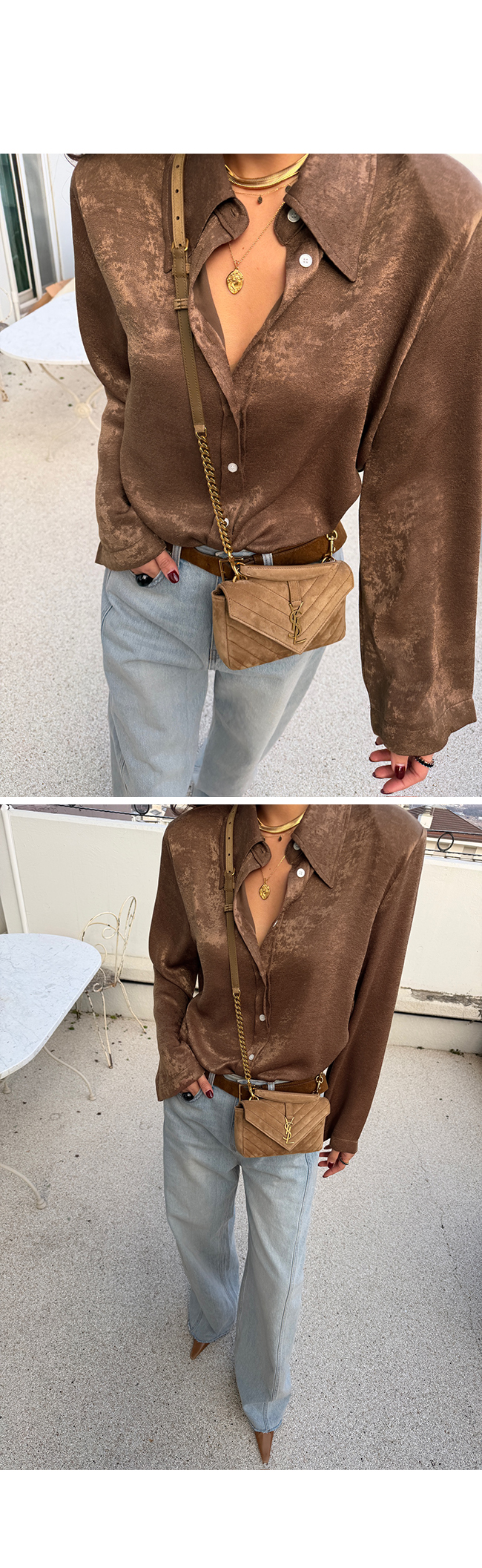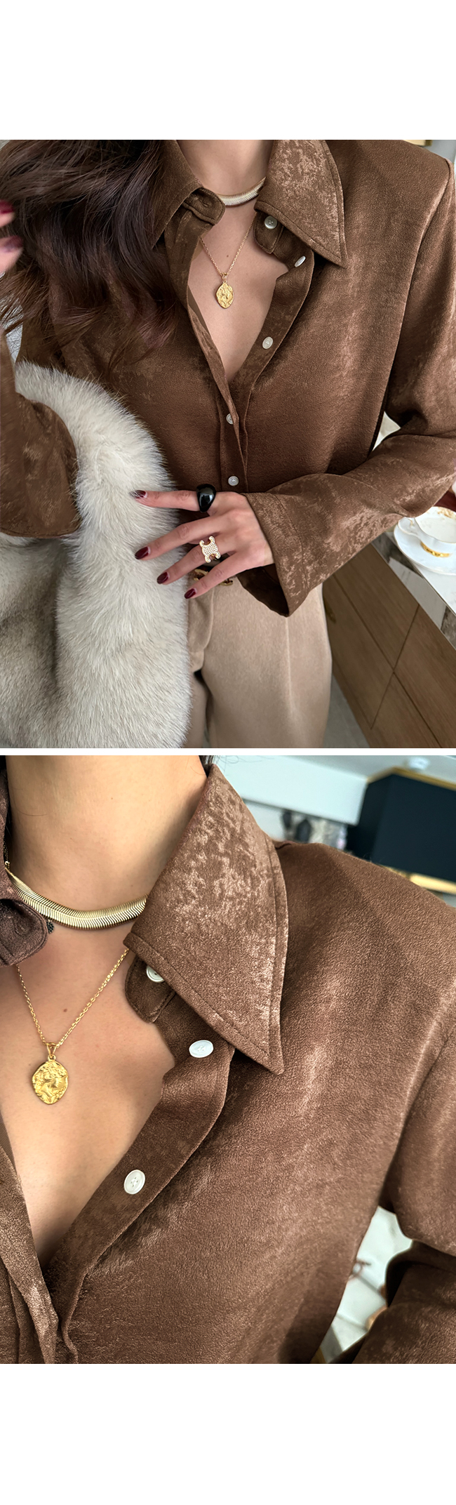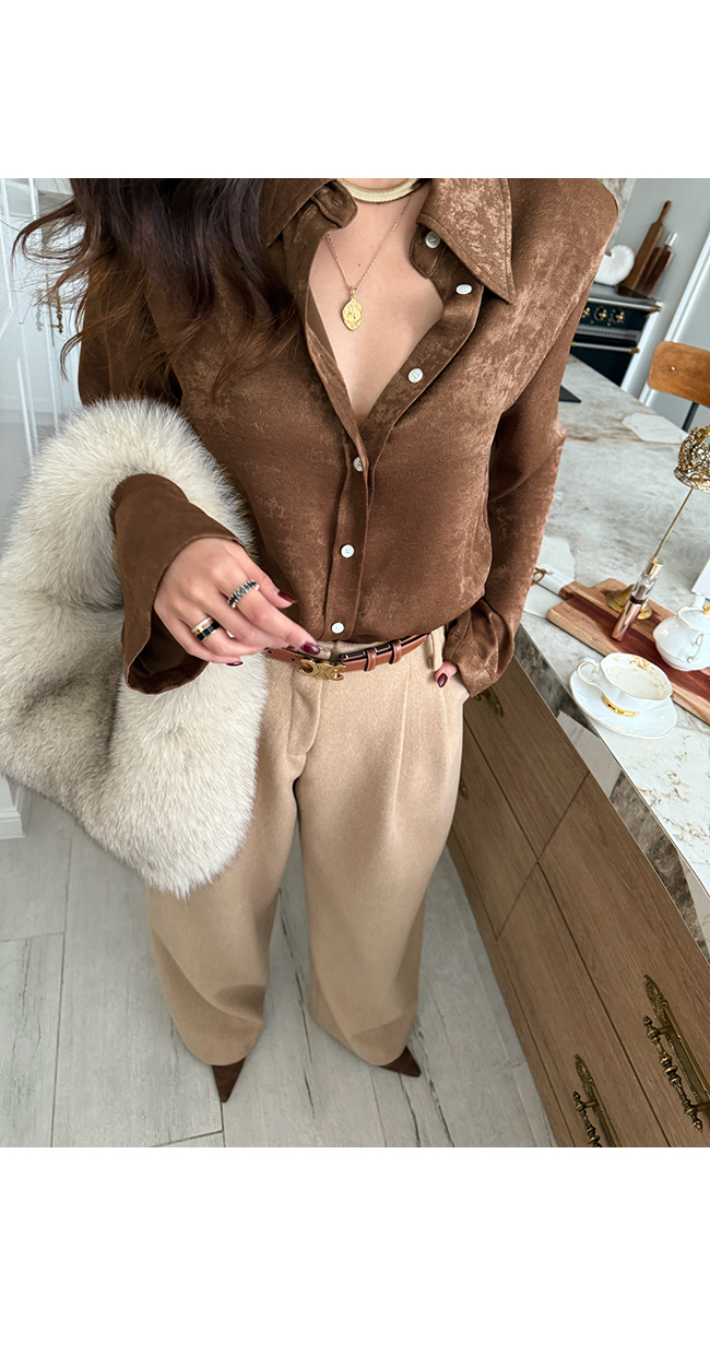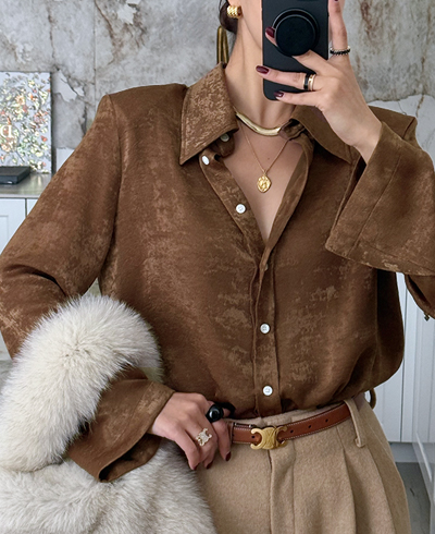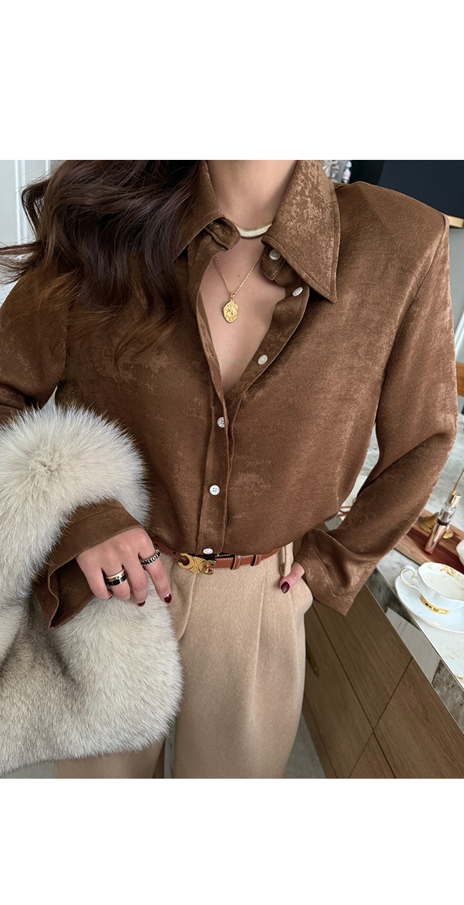 고급스러운 무드가 물씬 느껴지는 벨벳 셔츠예요.