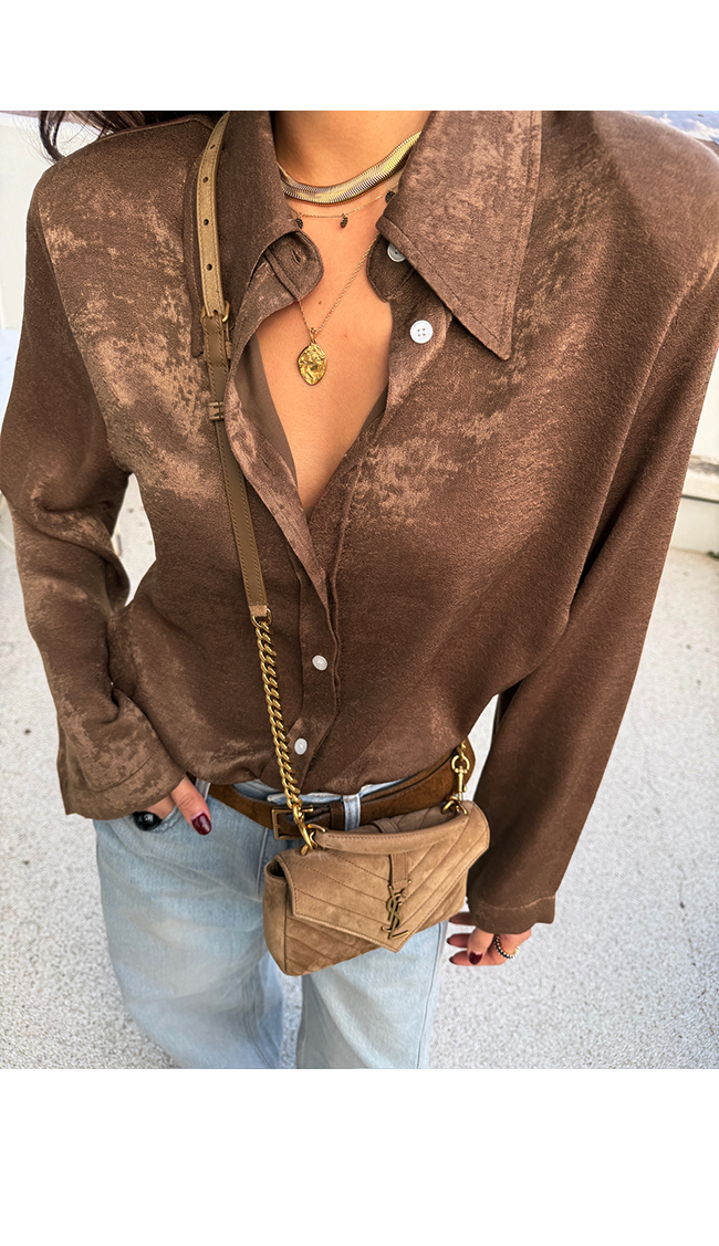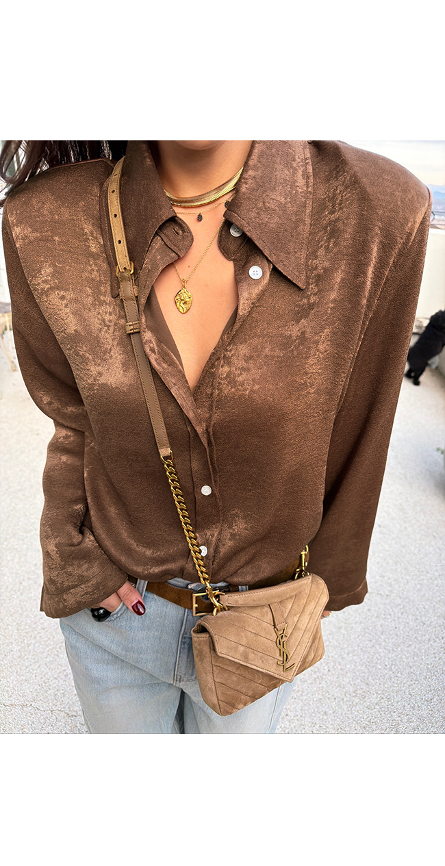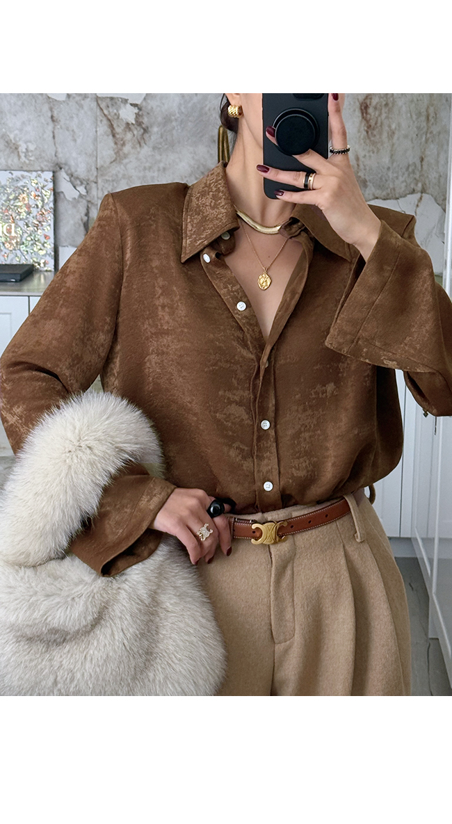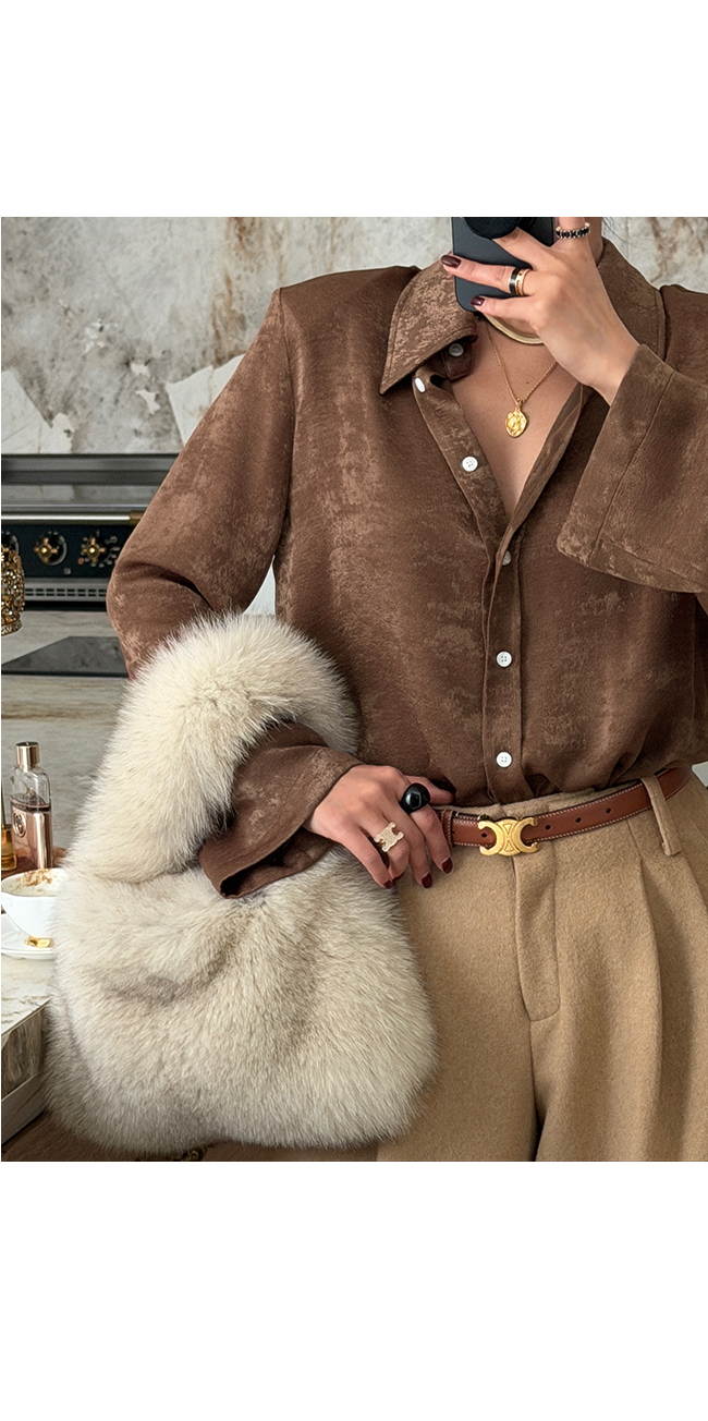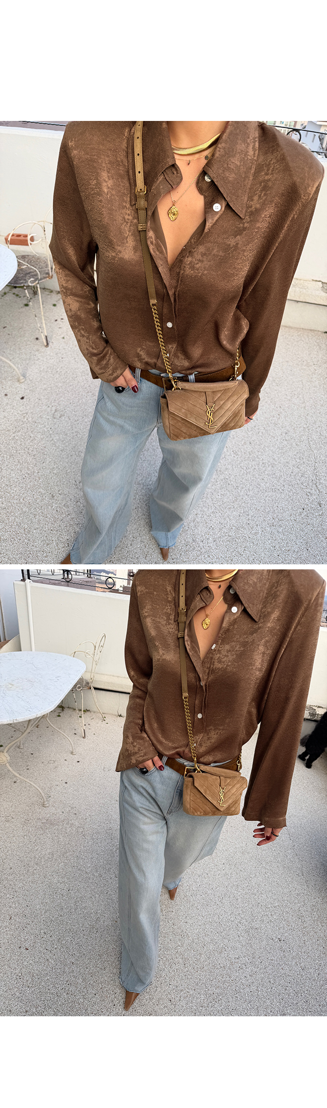 고급스러운 무드가 물씬 느껴지는 벨벳 셔츠예요.