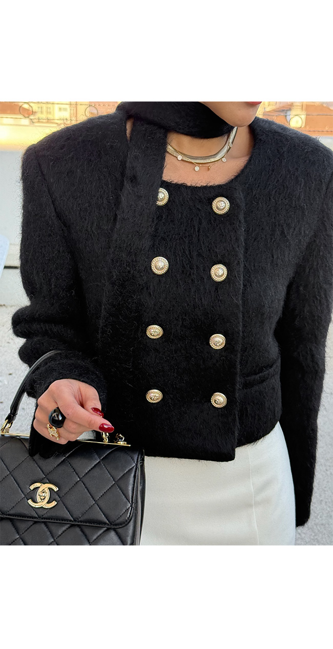 모두 갖춘 알파카 울 타이 금장 더블 자켓,