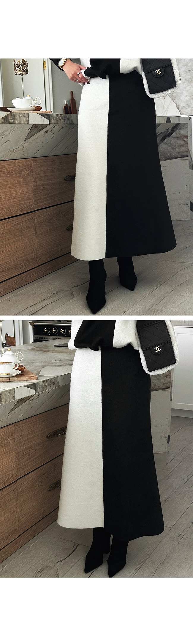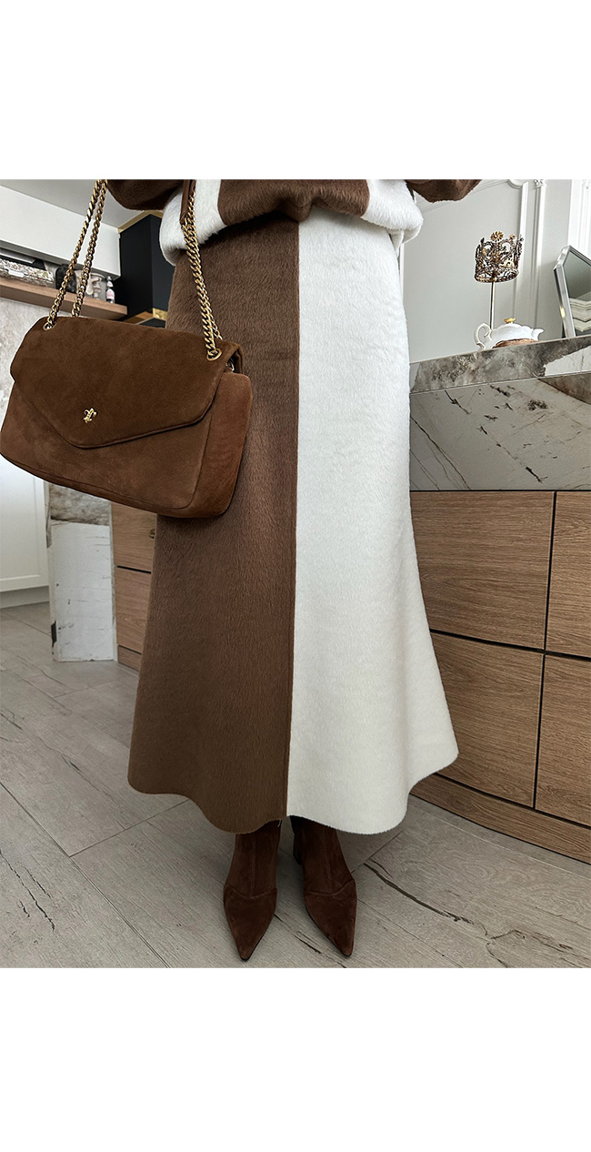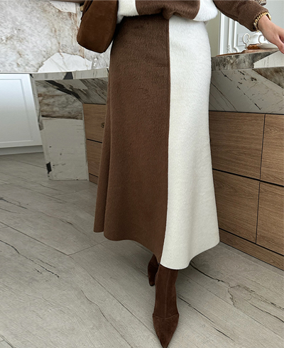 만족시키는 울혼방 배색 롱 스커트입니다.