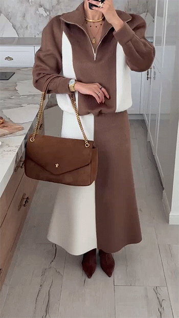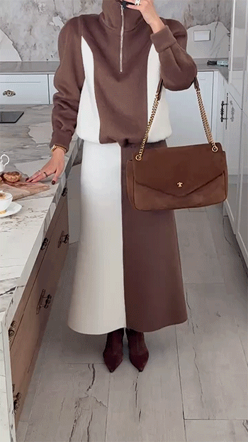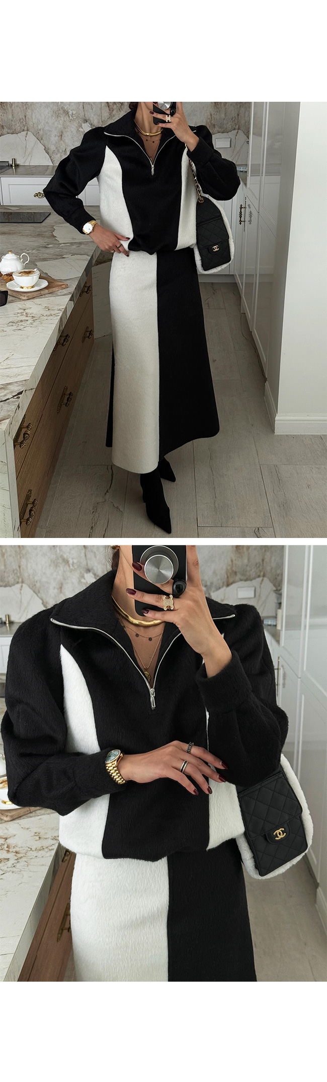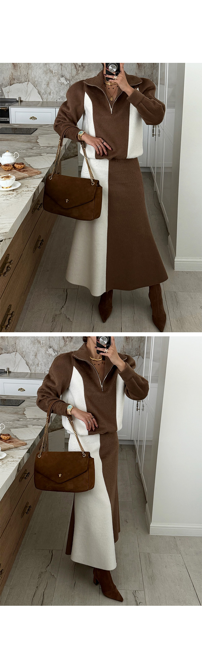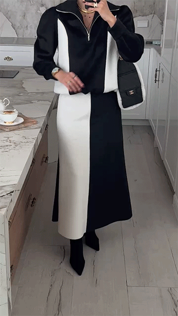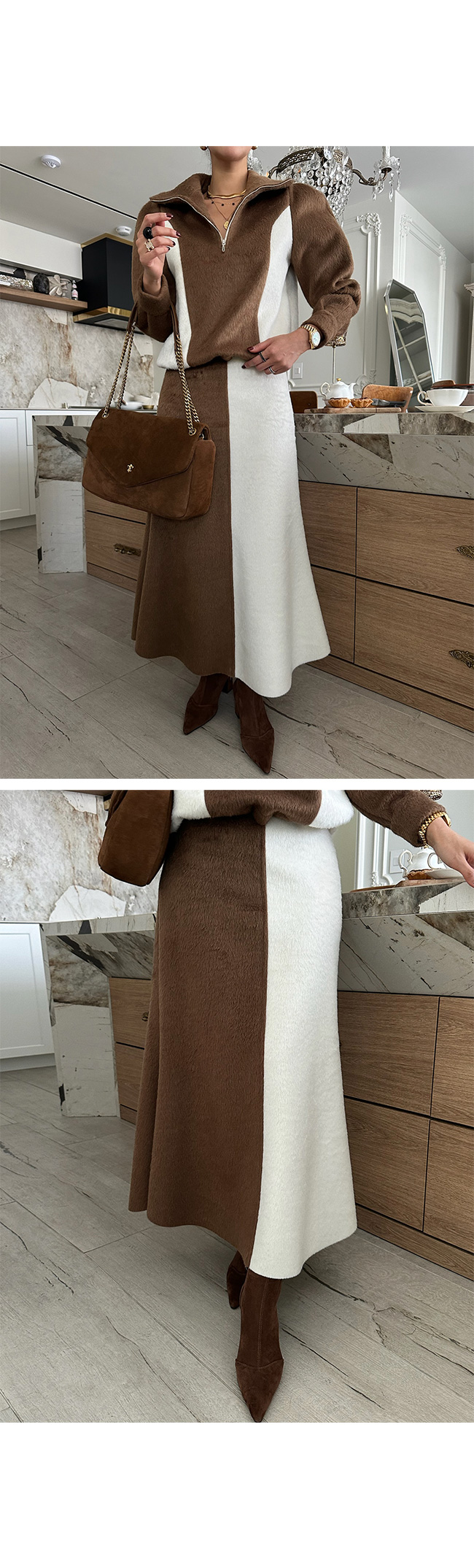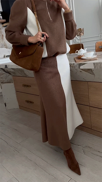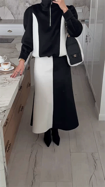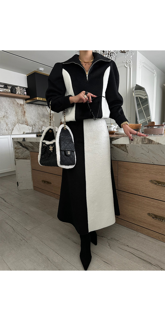 단독 착용은 물론, 같은 원단의 배색 롱 스커트와