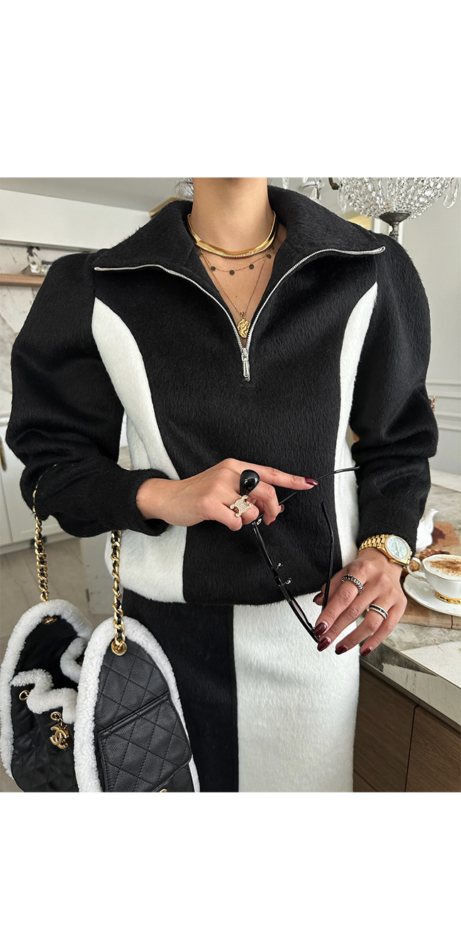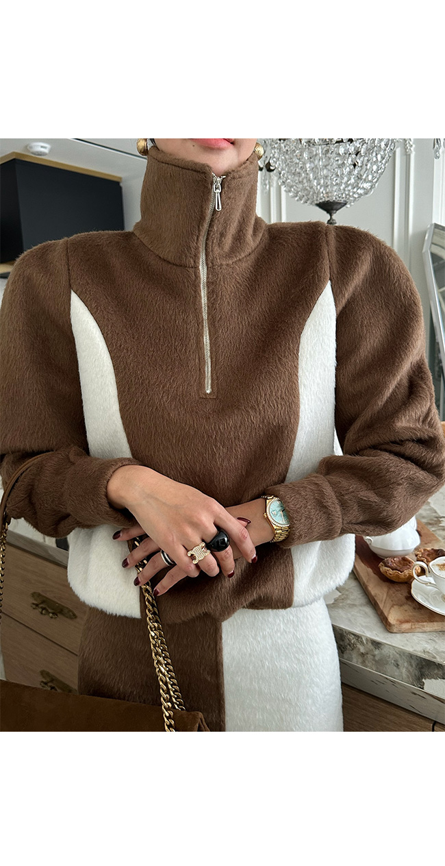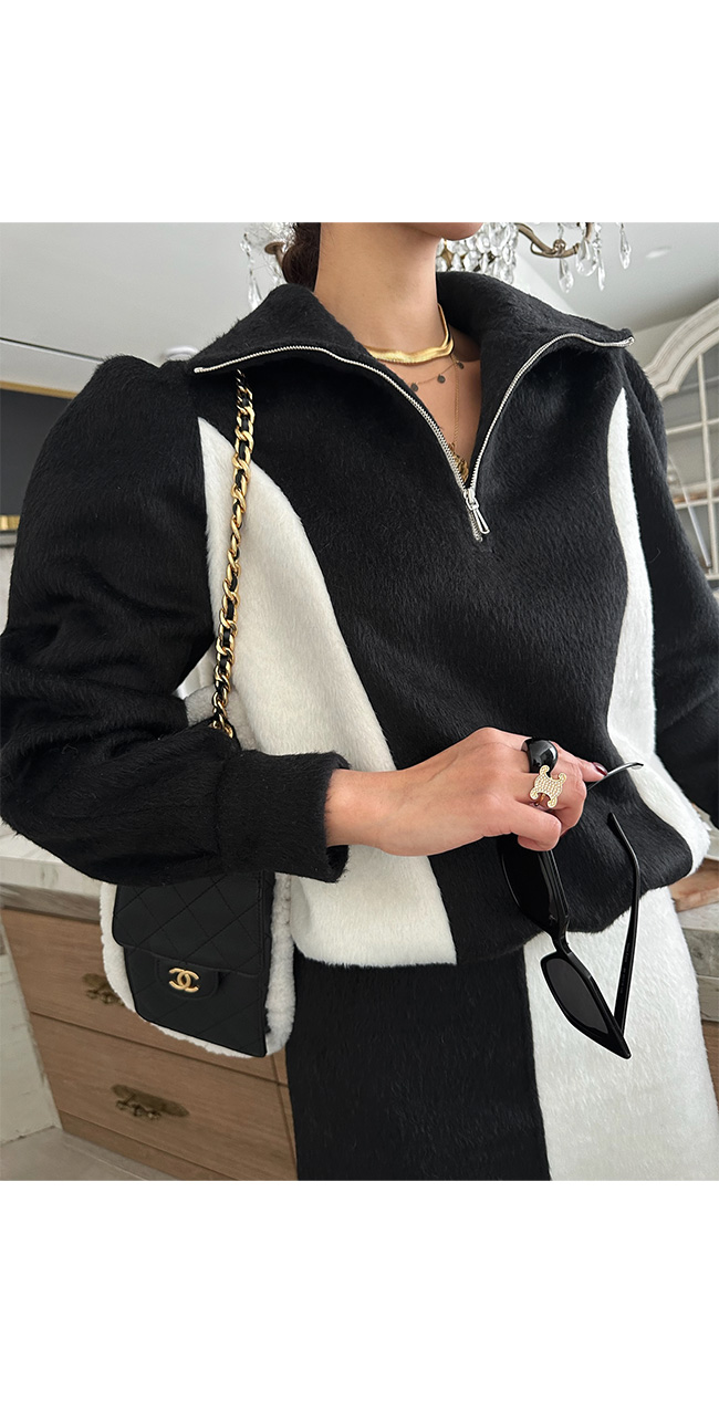 코빈드 배색하이넥반집업