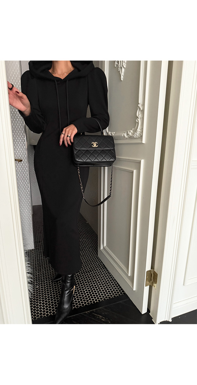 허리부터 힙, 밑단까지 곧게 떨어지는 롱 기장으로