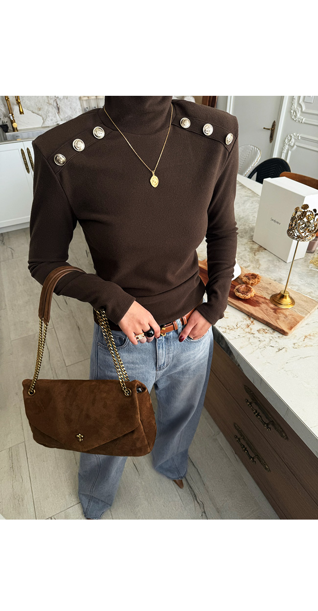 라인이 예쁘게 살아나는 폴라 티셔츠예요.