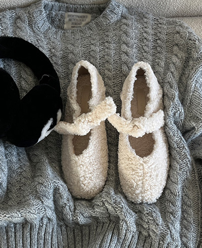 - 둥근 앞코와 폭신한 안감으로 따뜻하고 사랑스러운 무드
