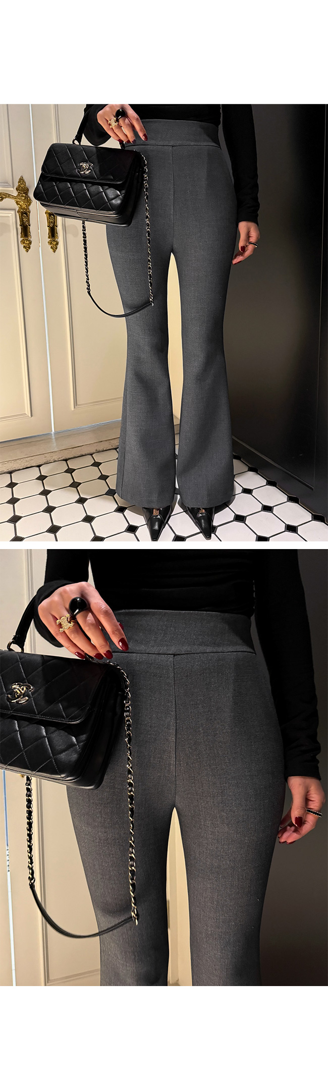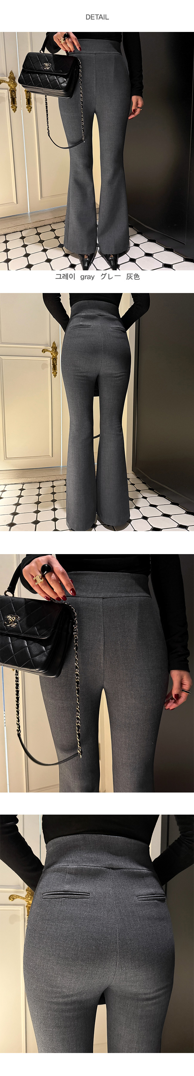 무릎 아래로 자연스럽게 퍼지는 부츠컷 실루엣이
