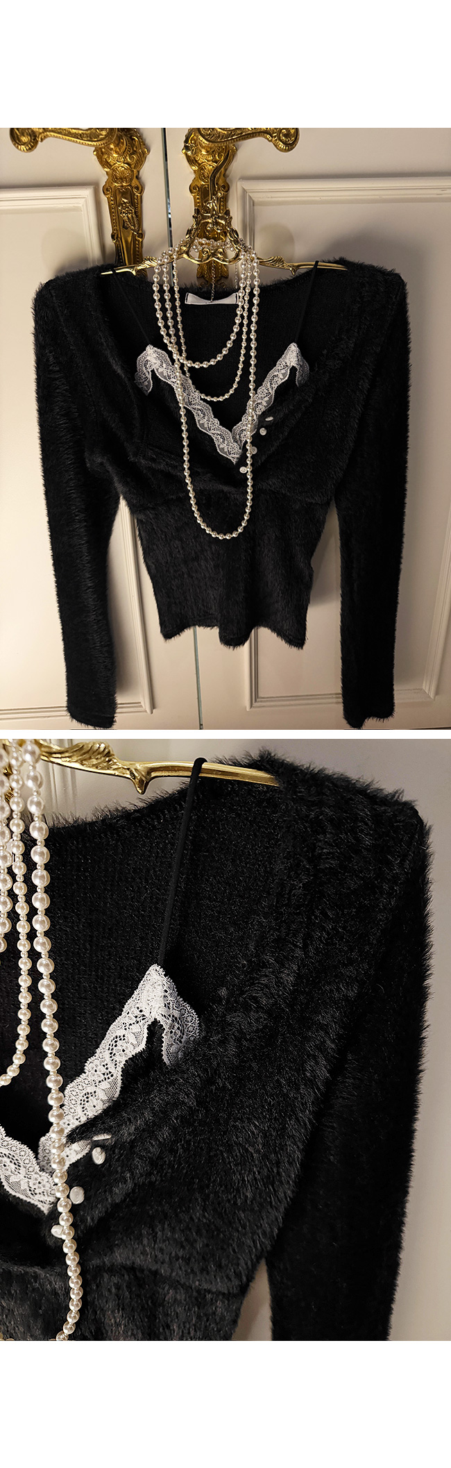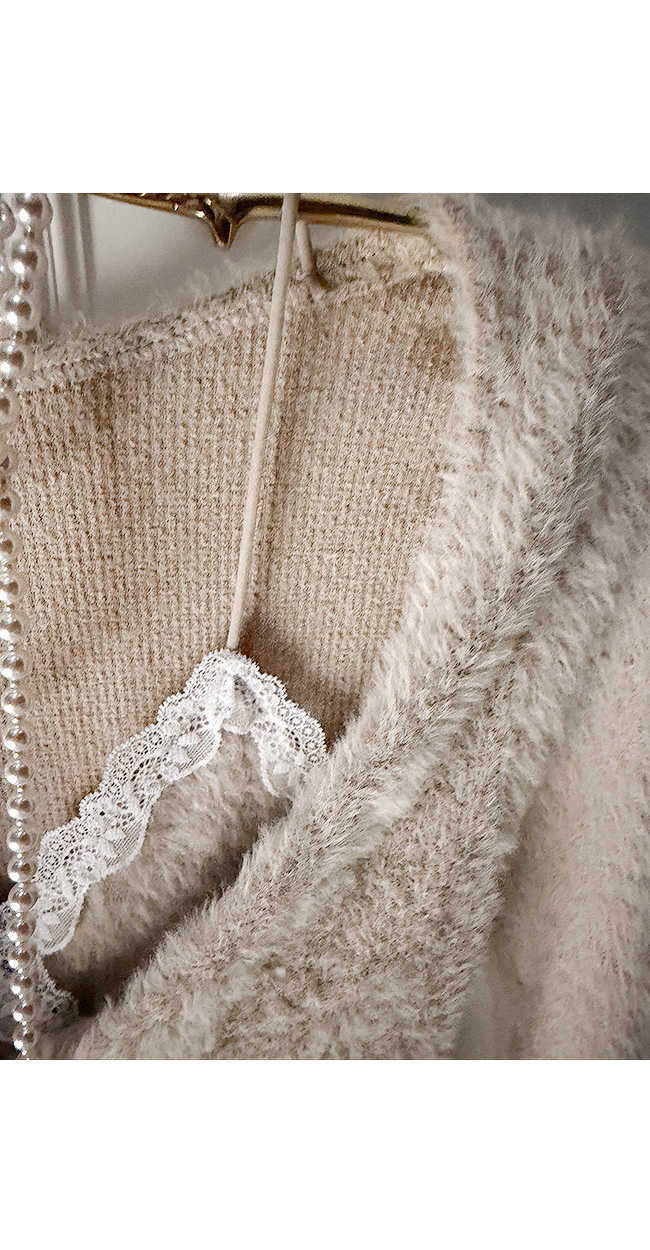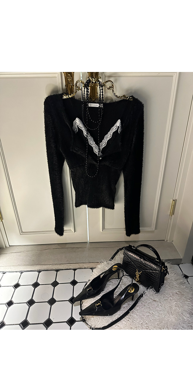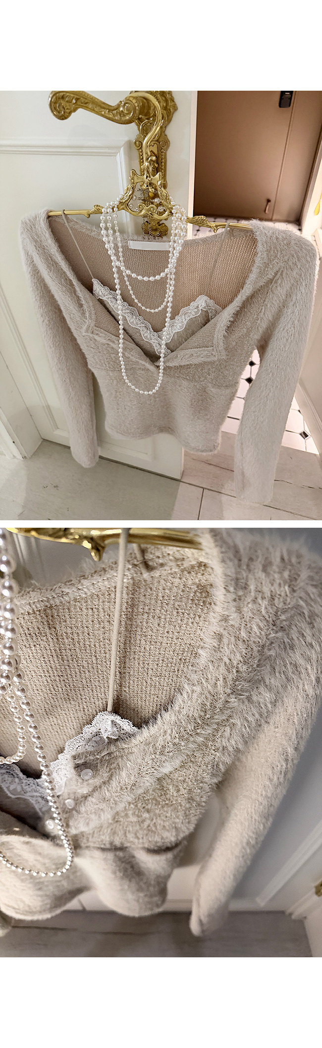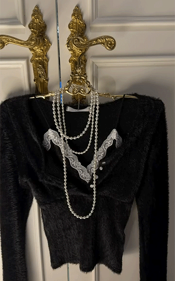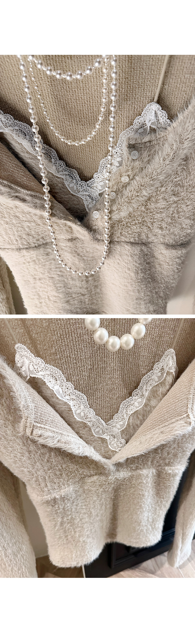 넥라인에는 레이스 디테일이 더해져