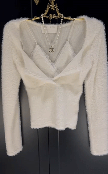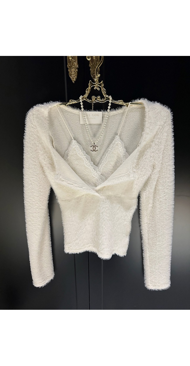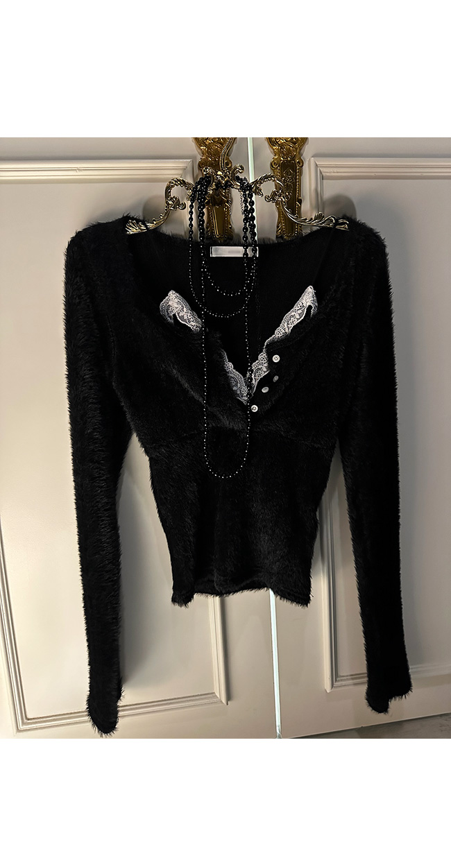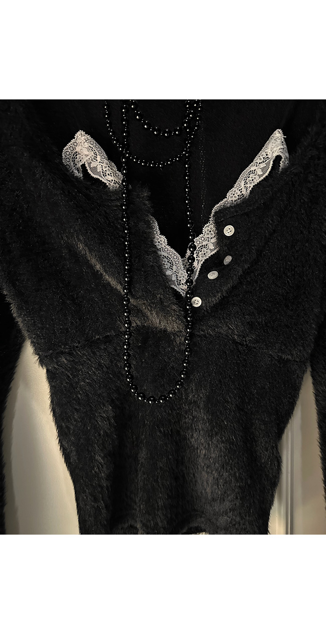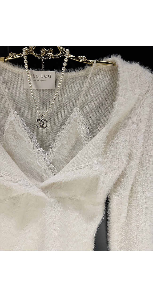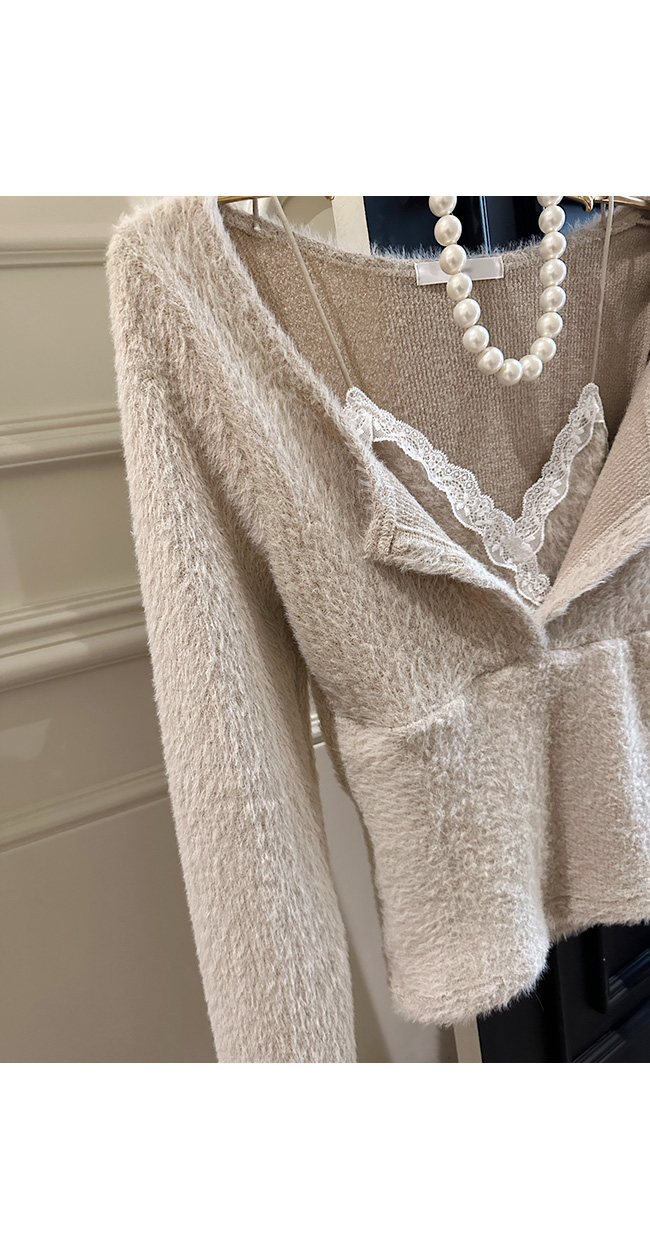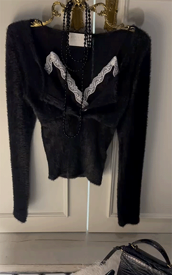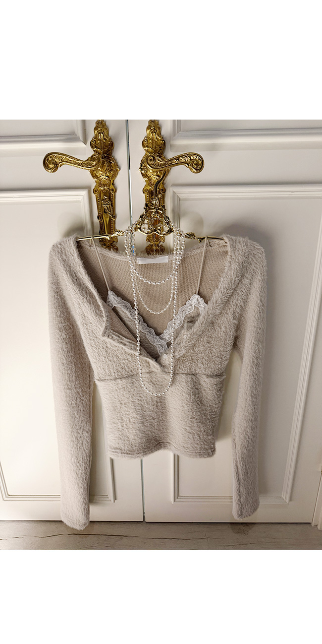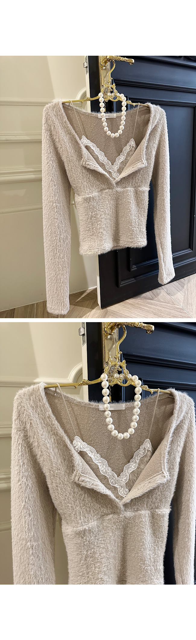넥라인에는 레이스 디테일이 더해져