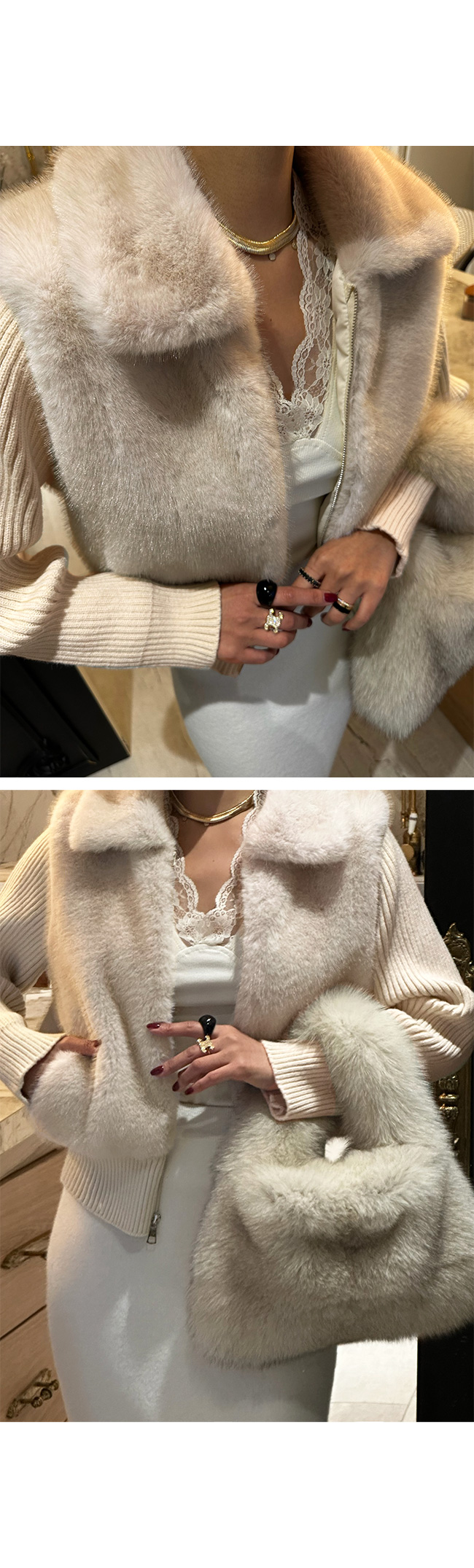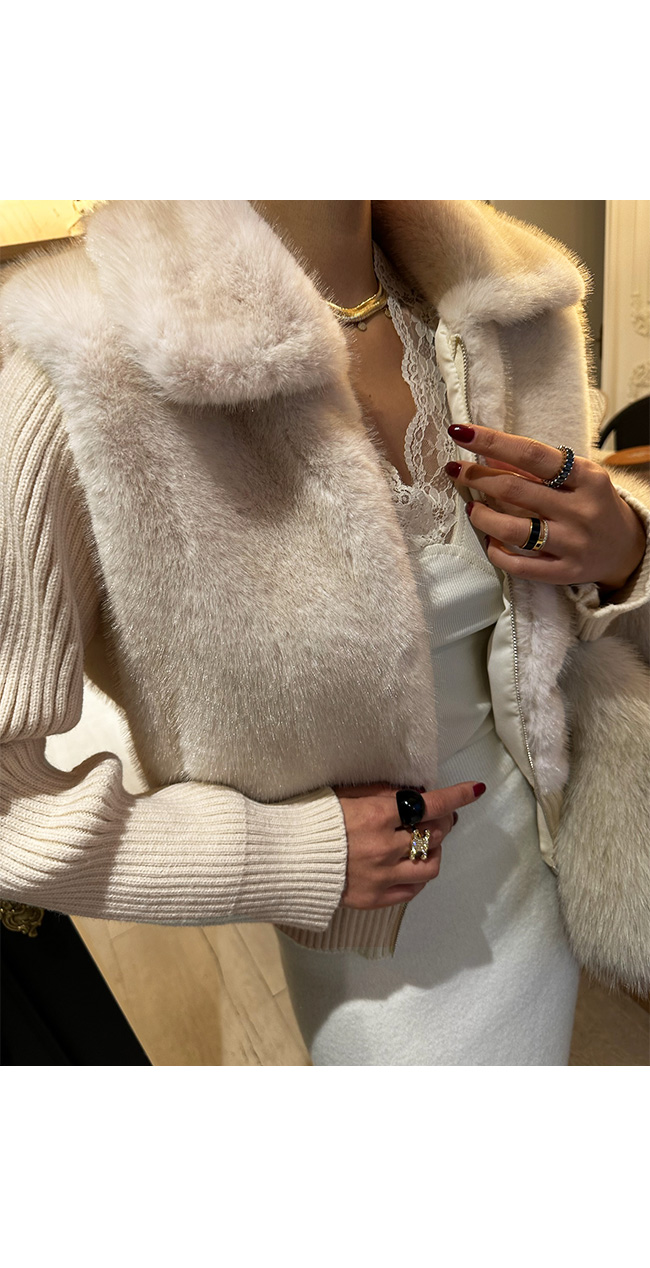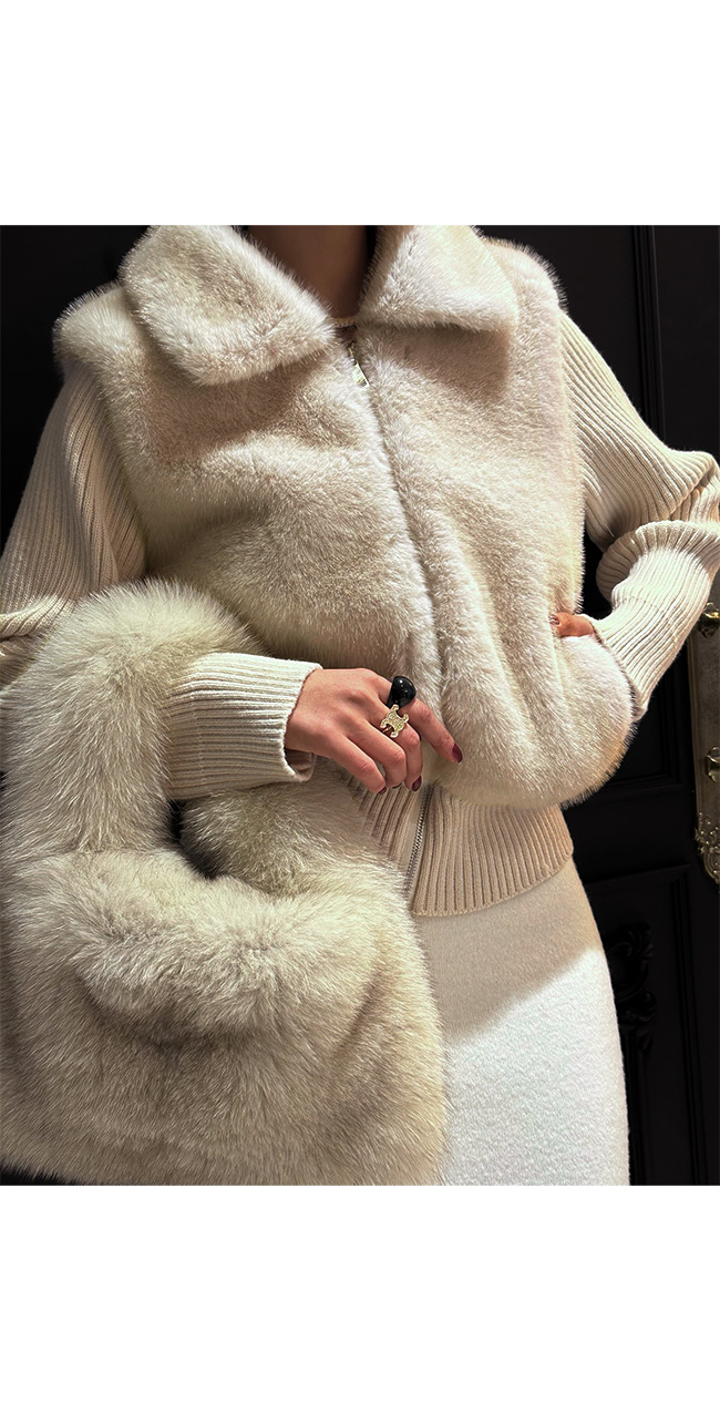 바디에 은은한 윤기가 흐르는 퍼 디자인이 믹스되어