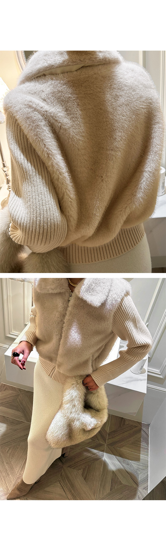 바디부분의 퍼는 얼굴 톤을 화사하게 밝혀주면서