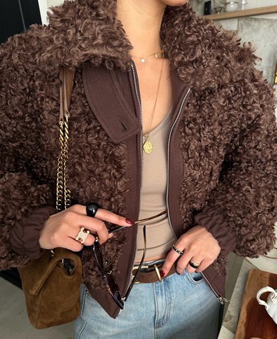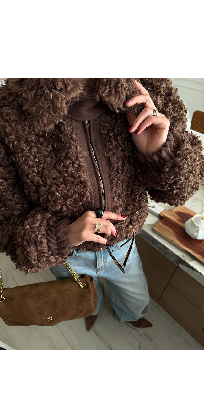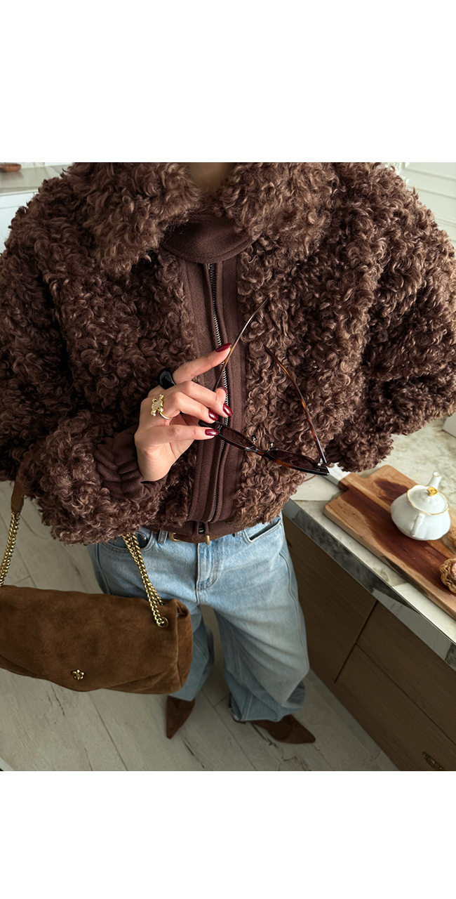 볼륨감 있는 퍼 텍스처가 고급스럽게 살아 있어