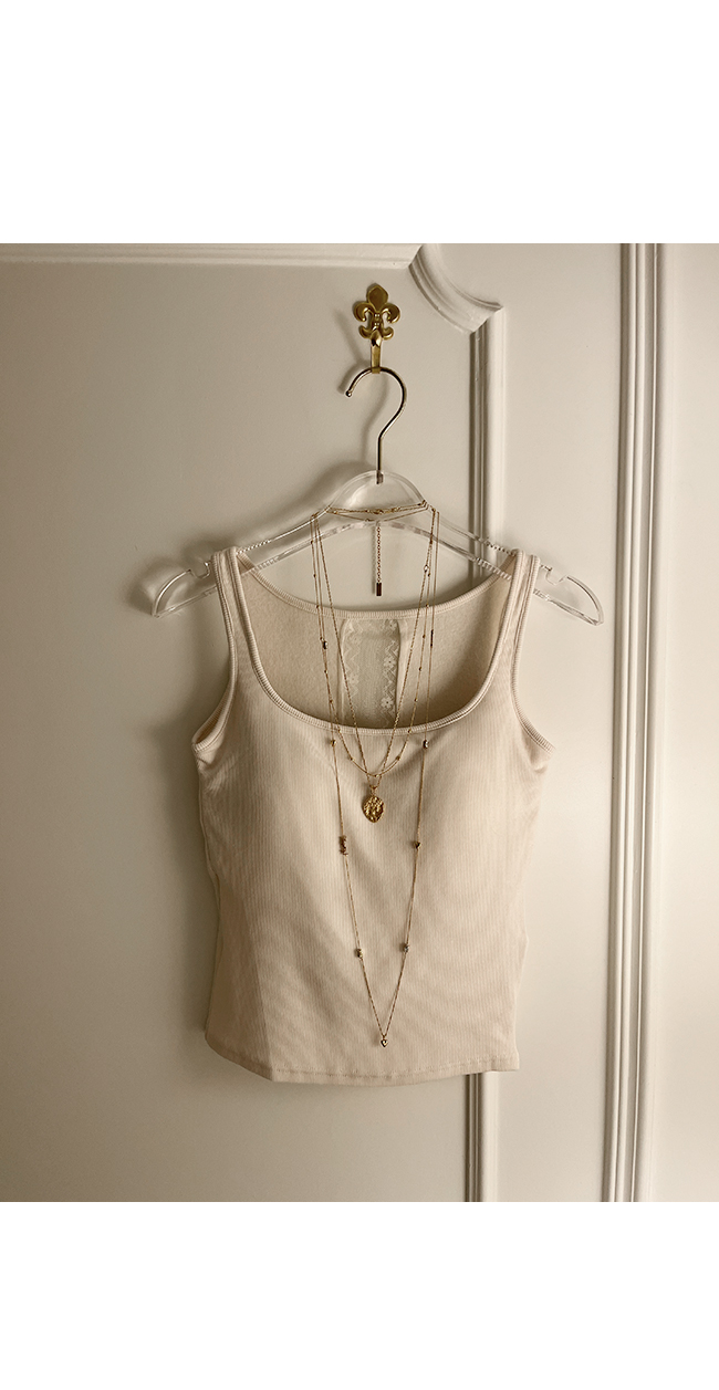 군더더기 없이 깔끔한 스퀘어 네크라인으로