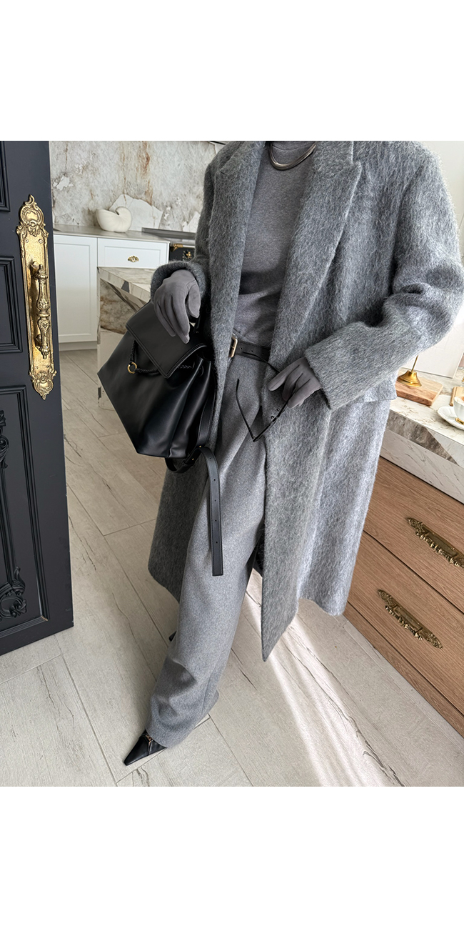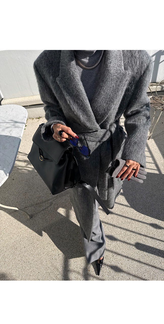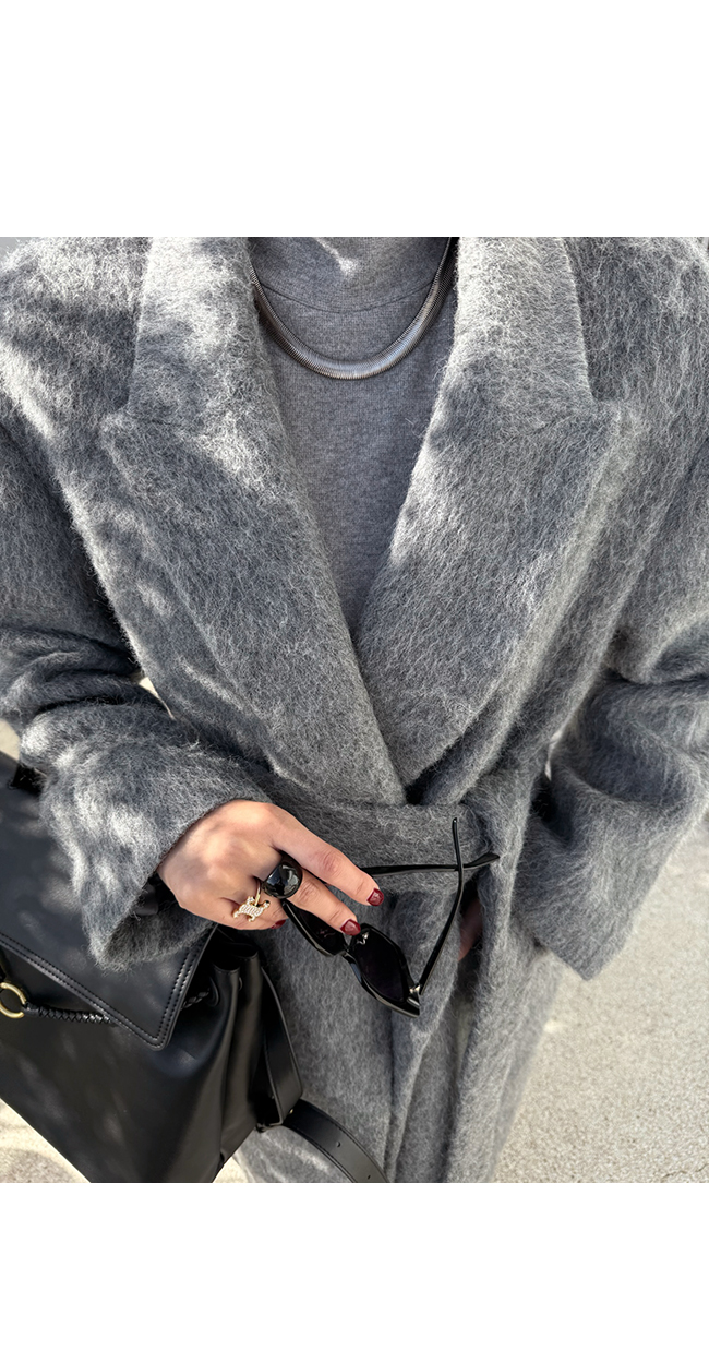 겨울 시즌 소장 가치 높은 알파카 울 벨트 코트입니다.