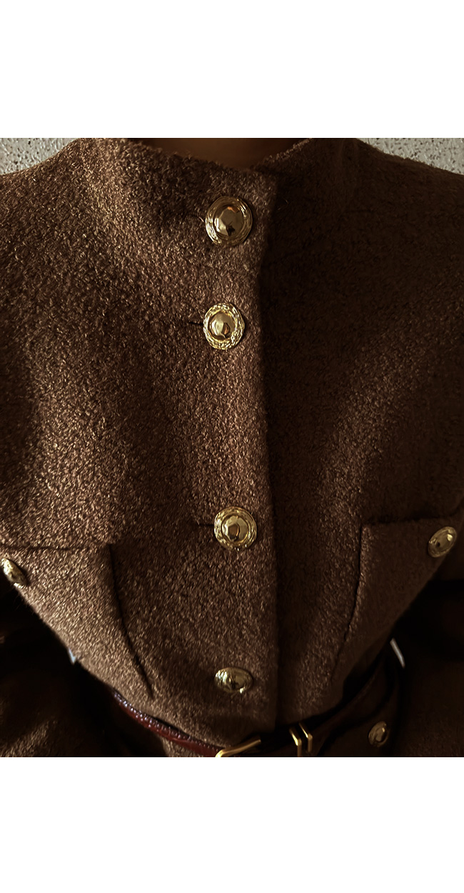 프론트에는 입체감이 느껴지는 골드 버튼 디테일이 더해져