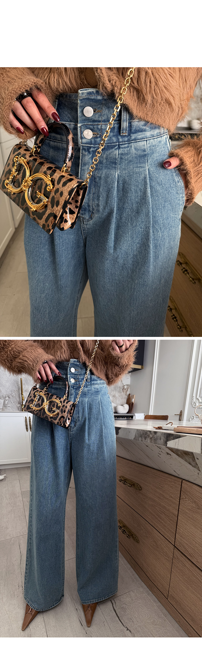 라인을 정말 예쁘게 잡아주는 하이웨스트 핀턱 데님 팬츠입니다.