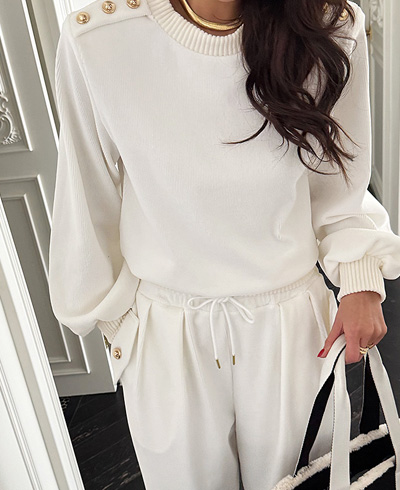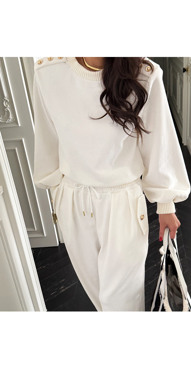 어깨 라인에는 버튼 디테일이 더해져