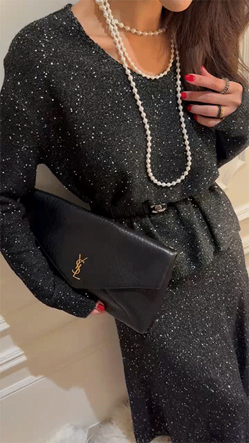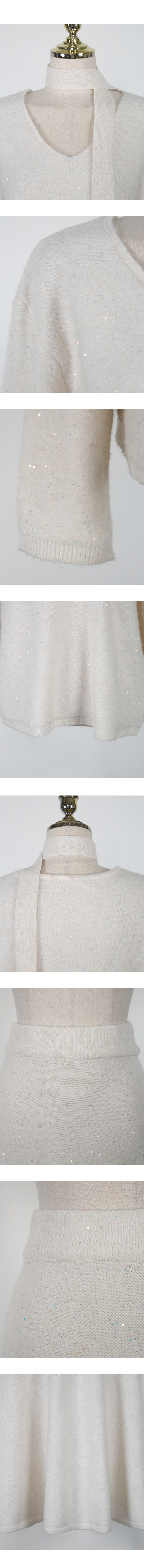 은은하게 반짝이는 펄 원사가 더해진 니트 소재로