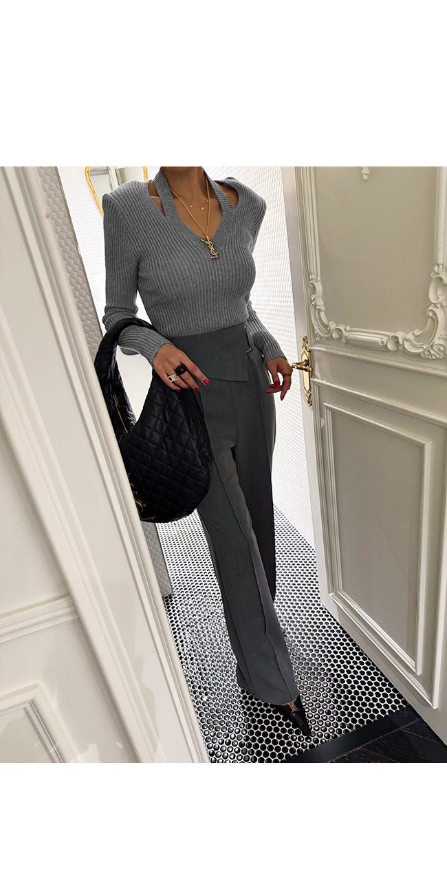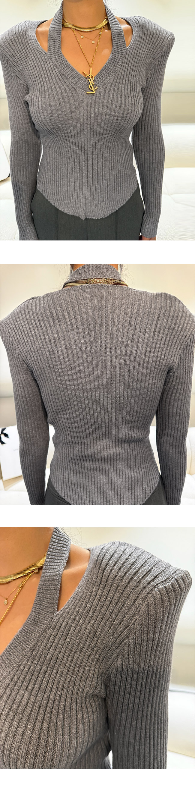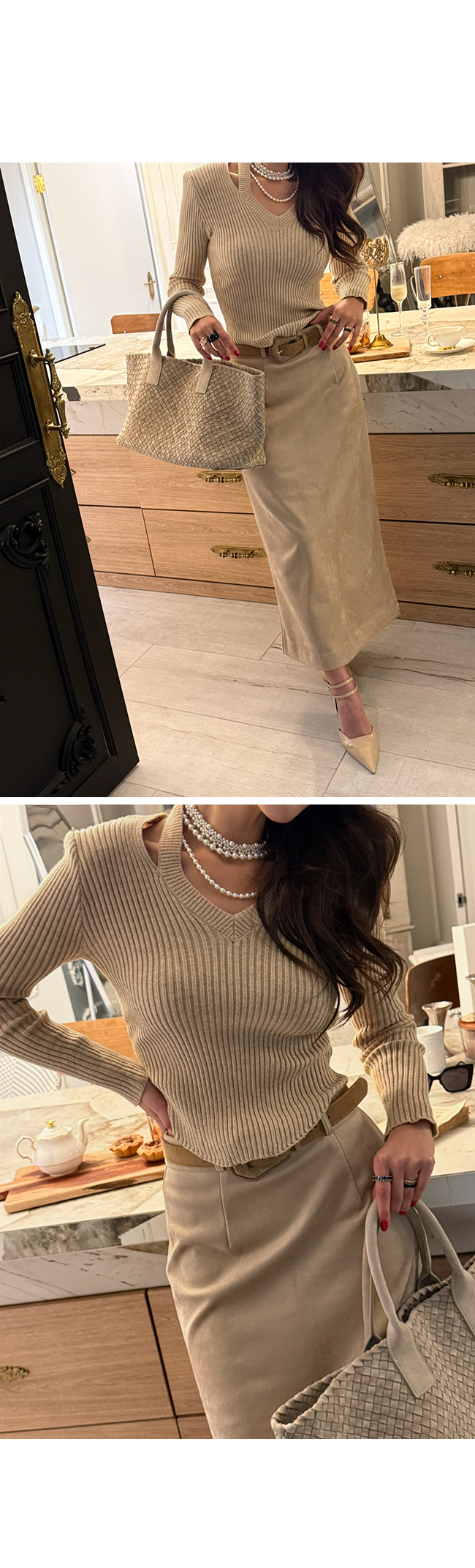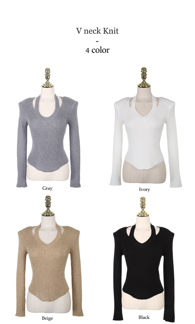세련된 브이넥 라인이 돋보이는 골지 니트 탑이에요.