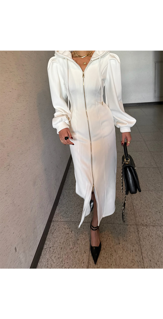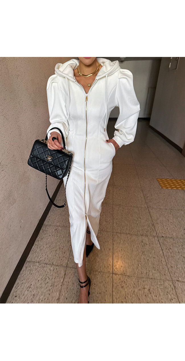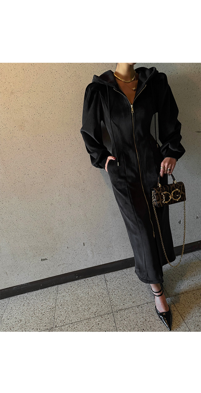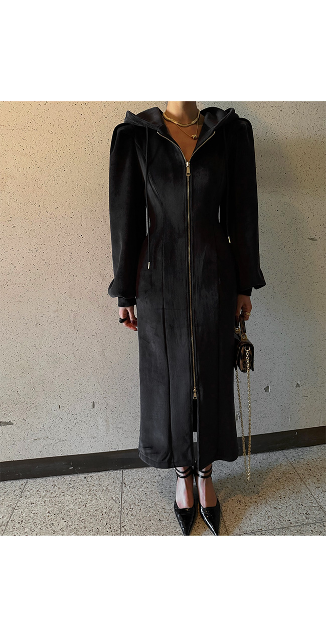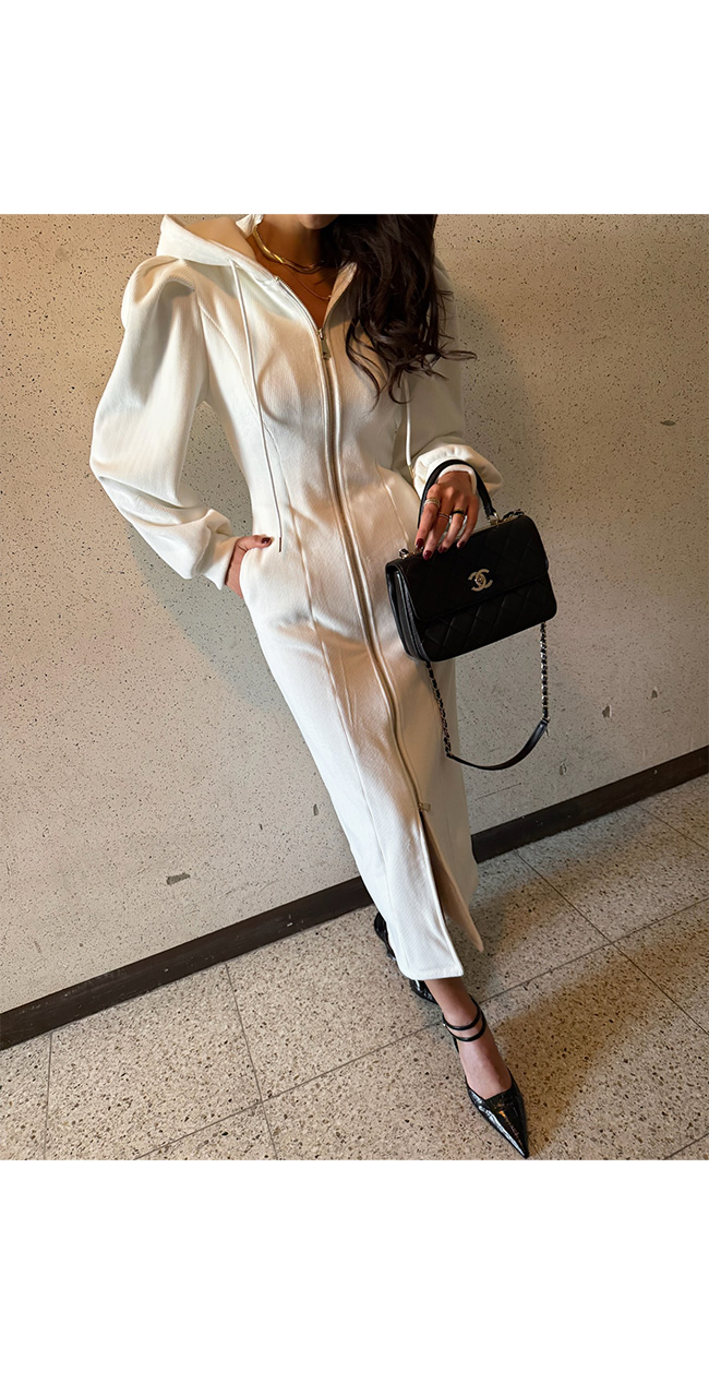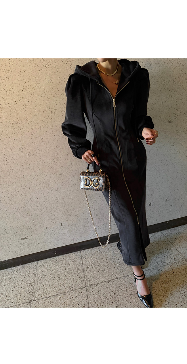 지퍼 여밈에 따라 넥라인 연출이 가능하며,