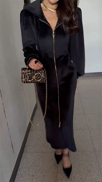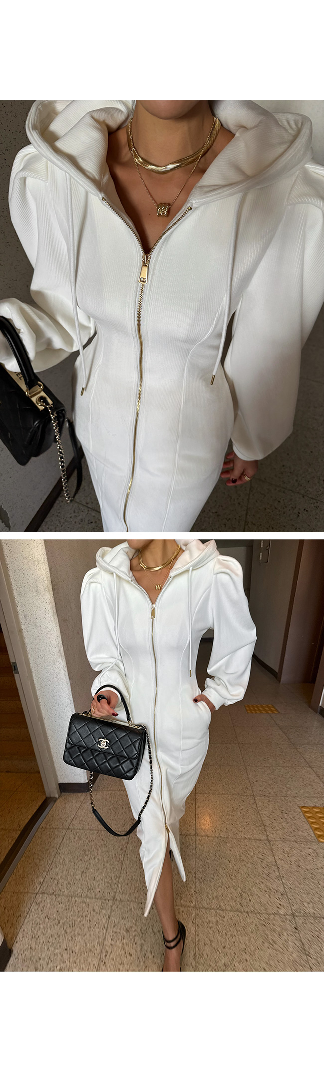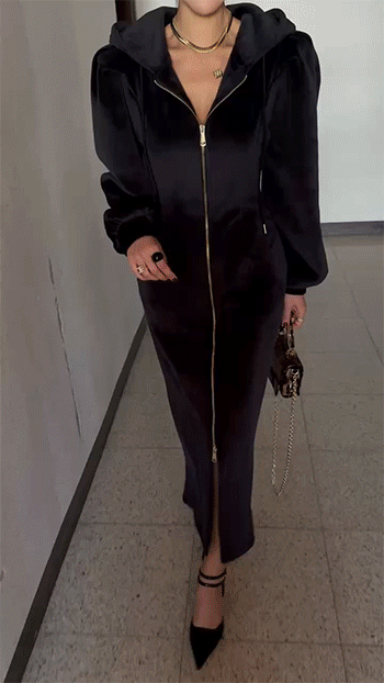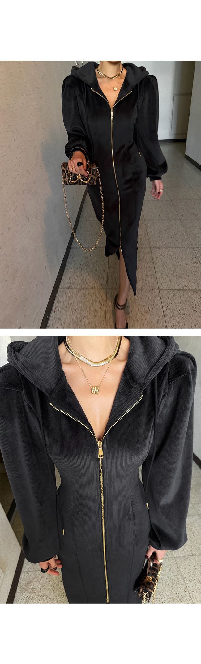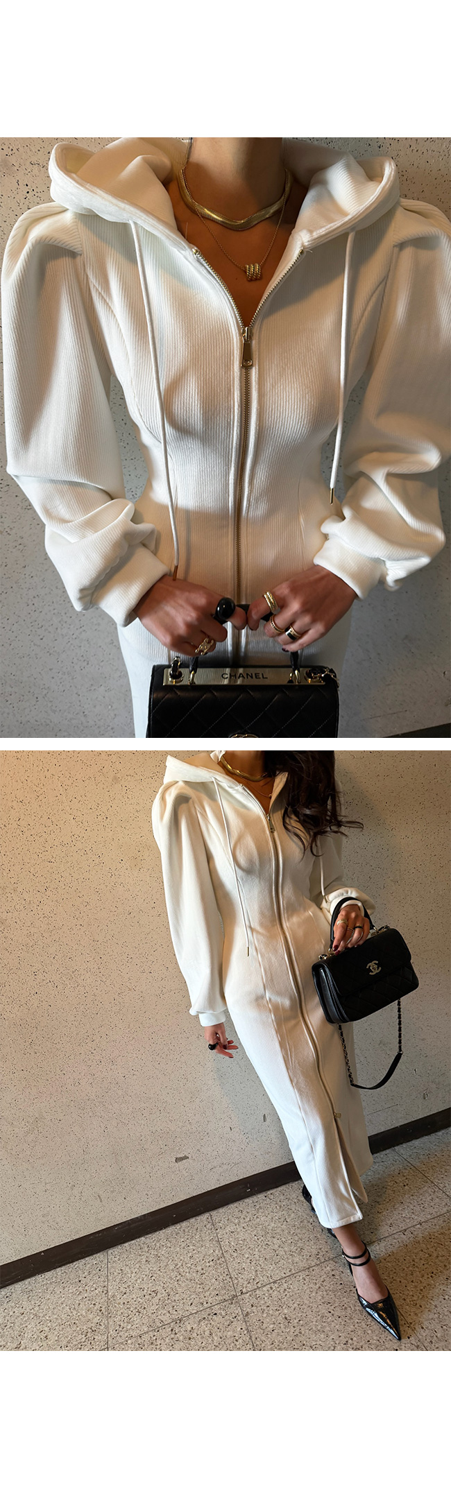 지퍼 여밈에 따라 넥라인 연출이 가능하며,