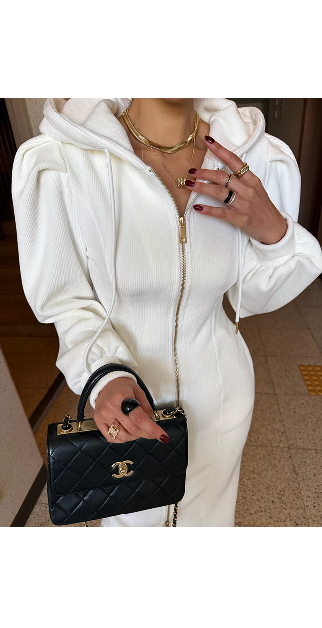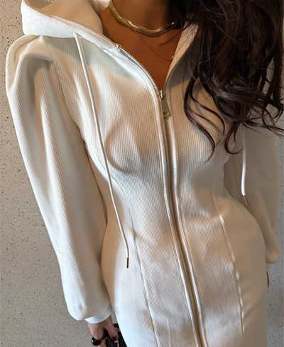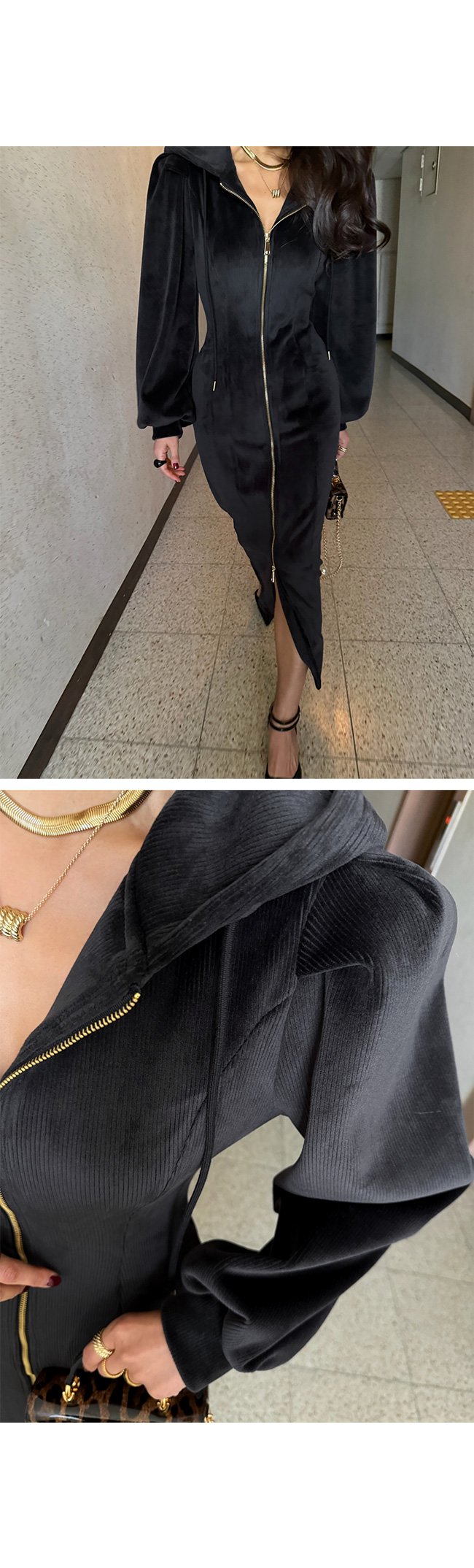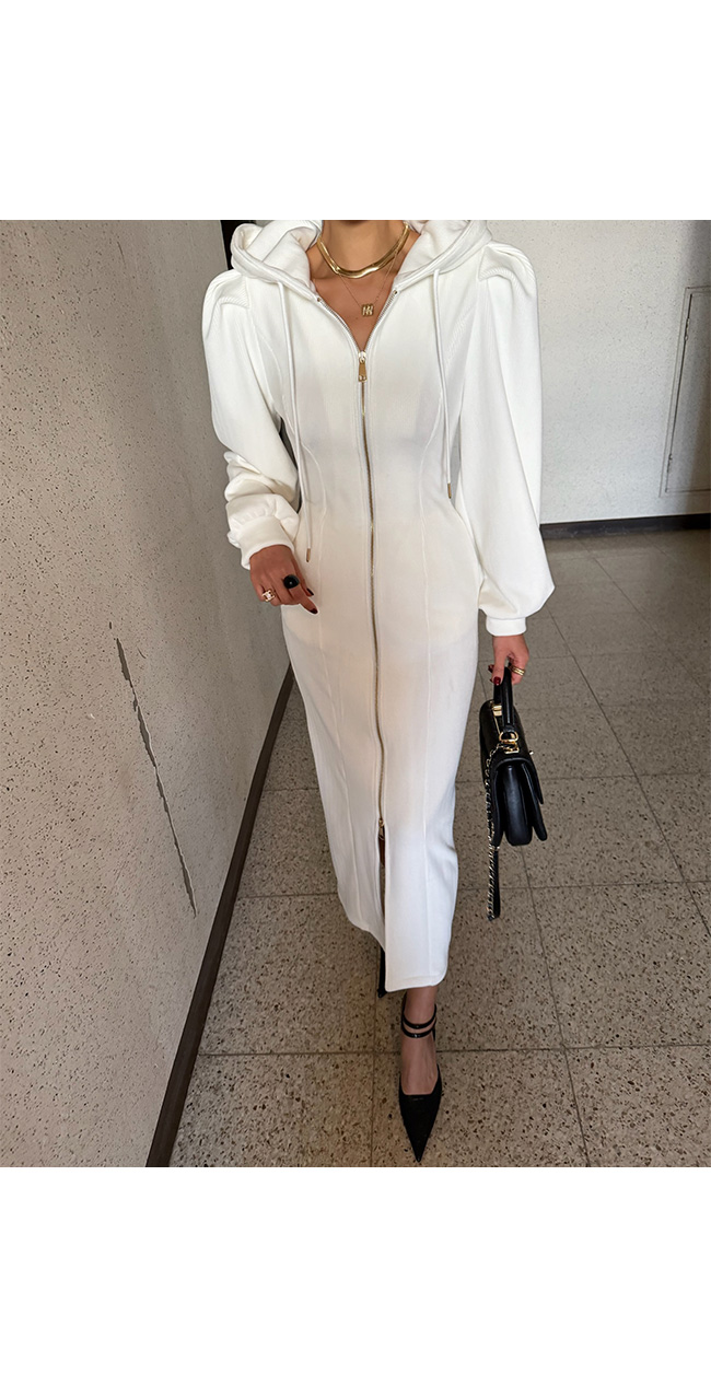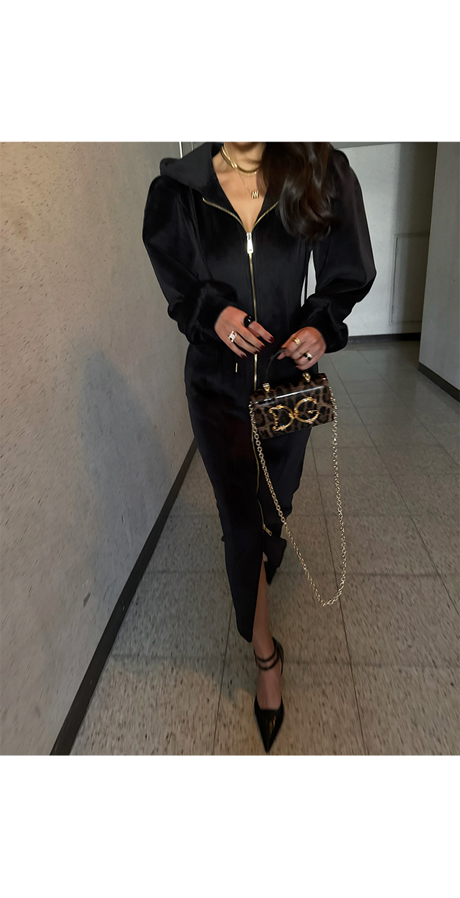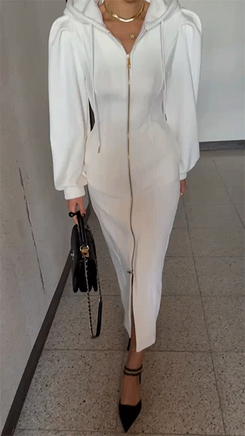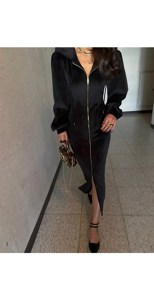 지퍼 여밈에 따라 넥라인 연출이 가능하며,
