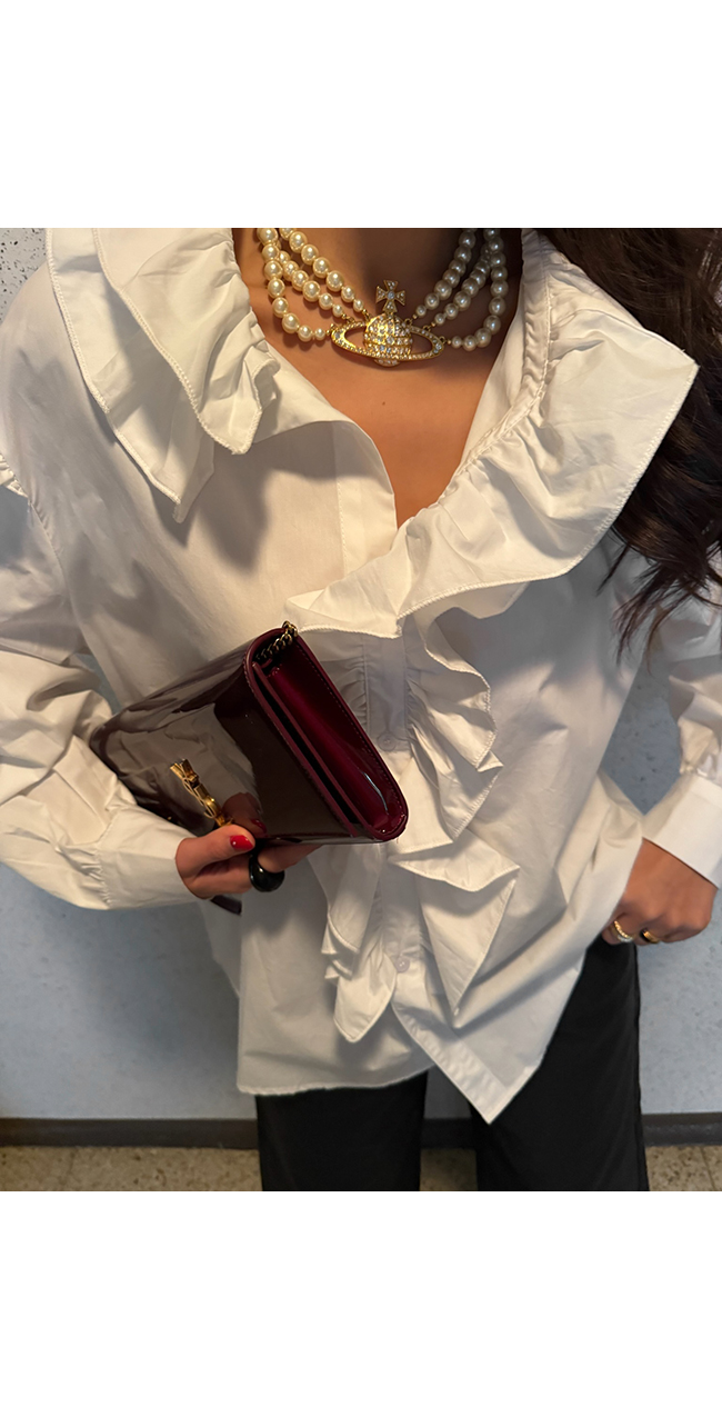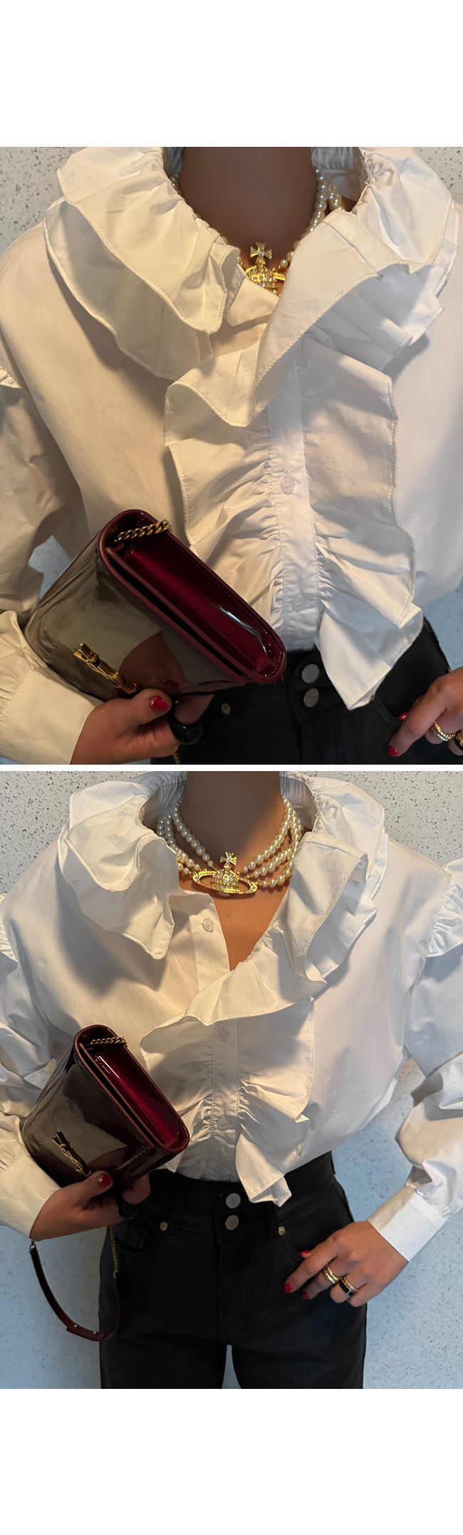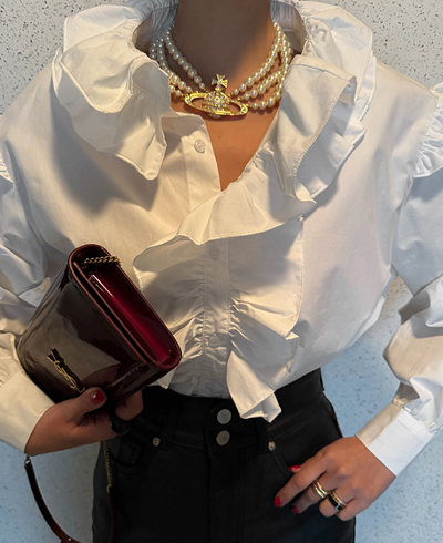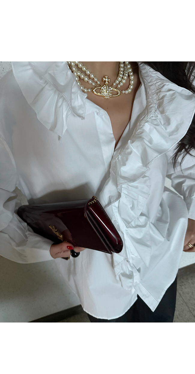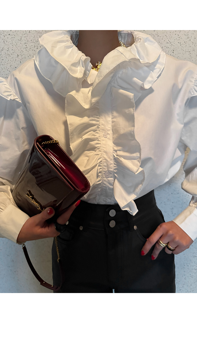로맨틱한 디테일이 돋보이는 프릴 블라우스예요.
