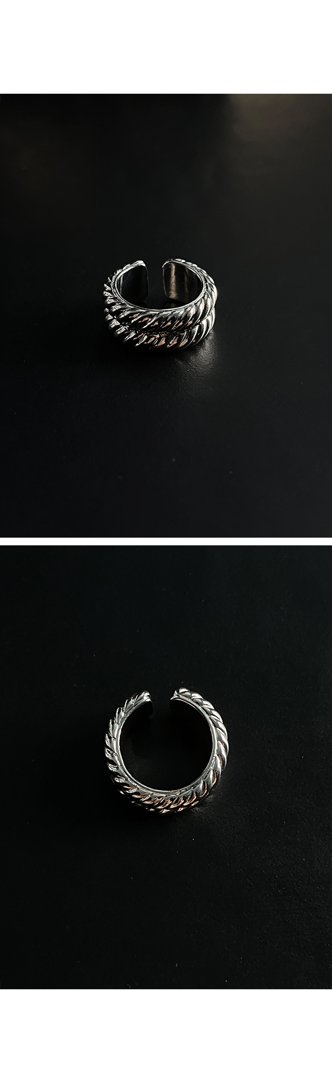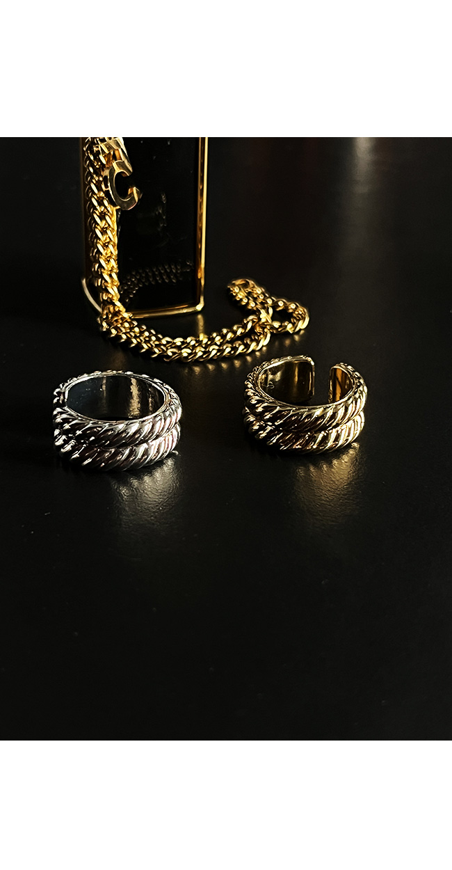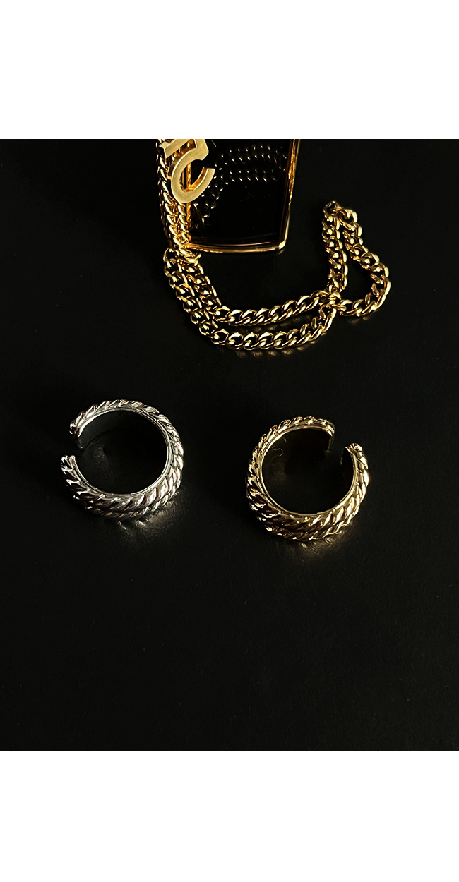 - 볼드한 체인 텍스처가 돋보이는 오픈형 반지