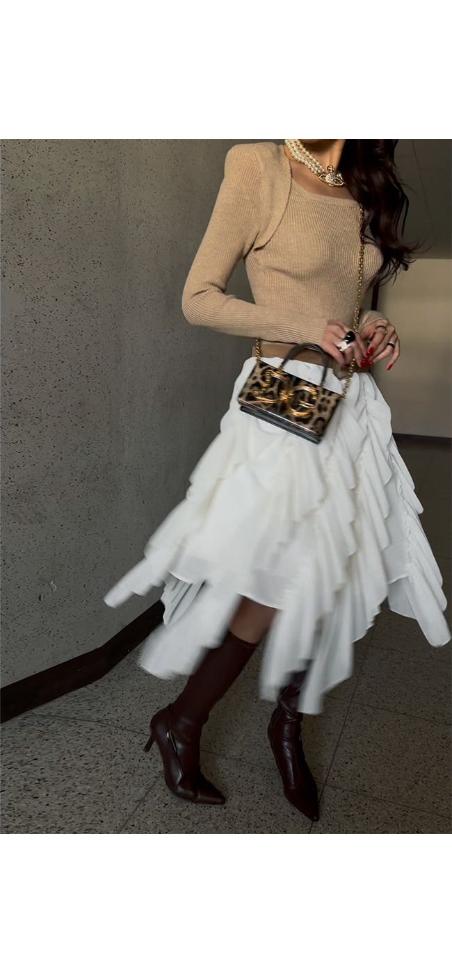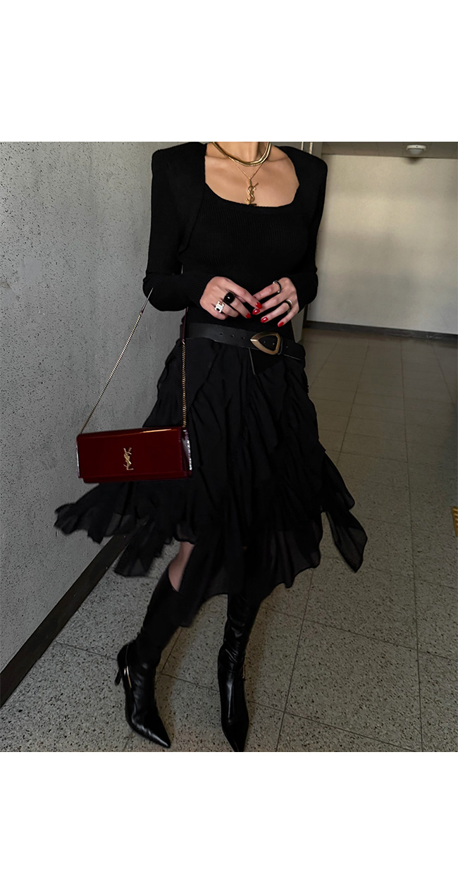 골지 짜임의 니트 소재가 바디 라인을 따라