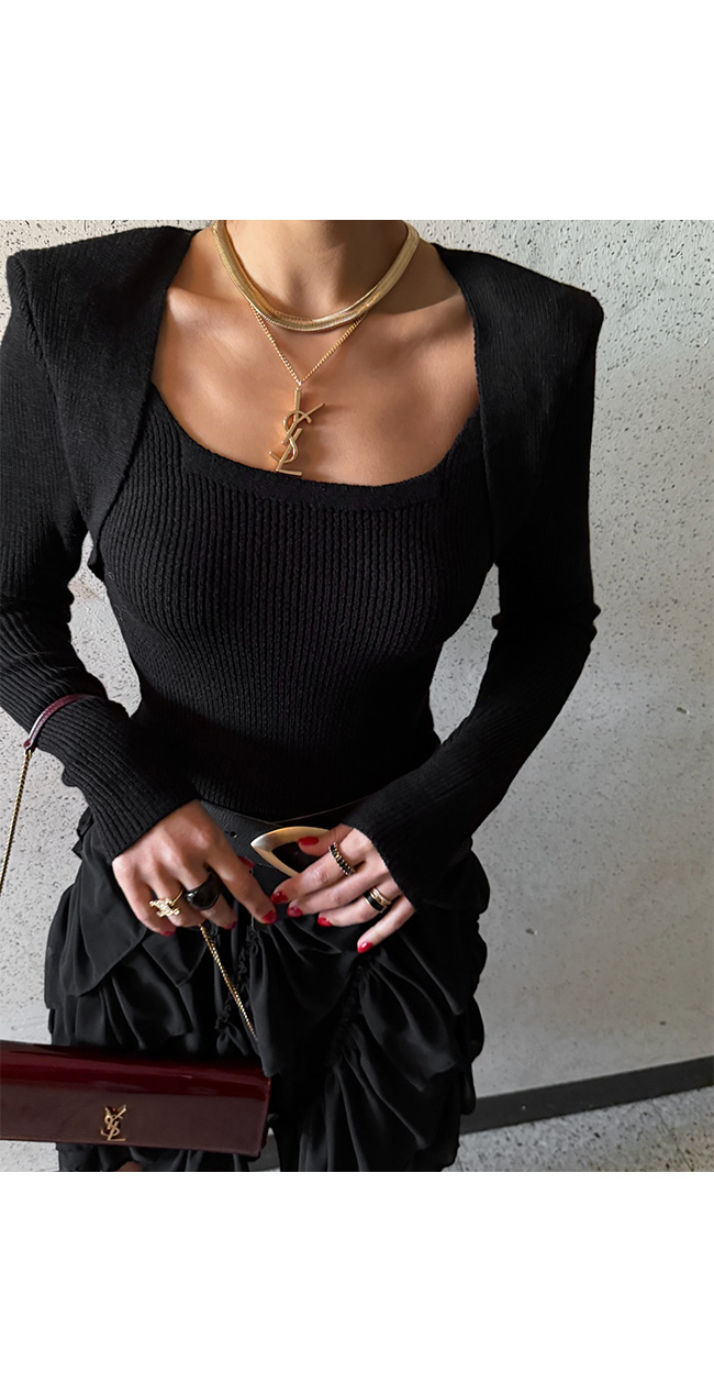 어깨 라인이 포인트가 되는 슬림 니트로,