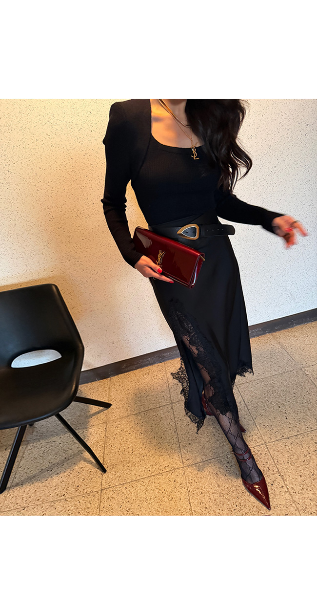 스퀘어 넥 디자인으로 쇄골과 목선을