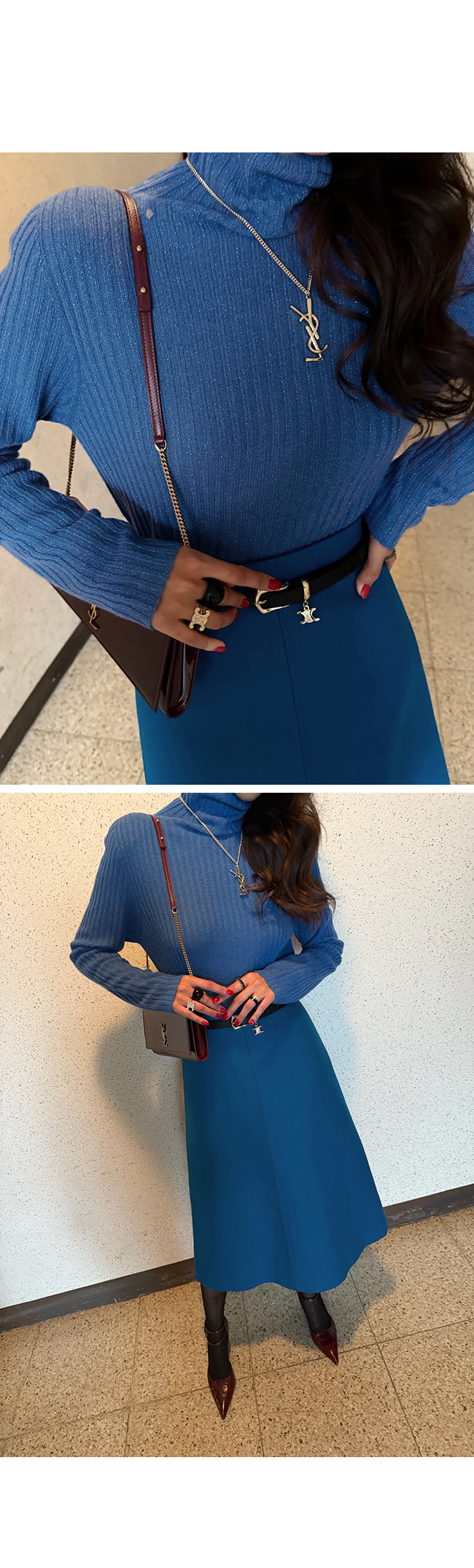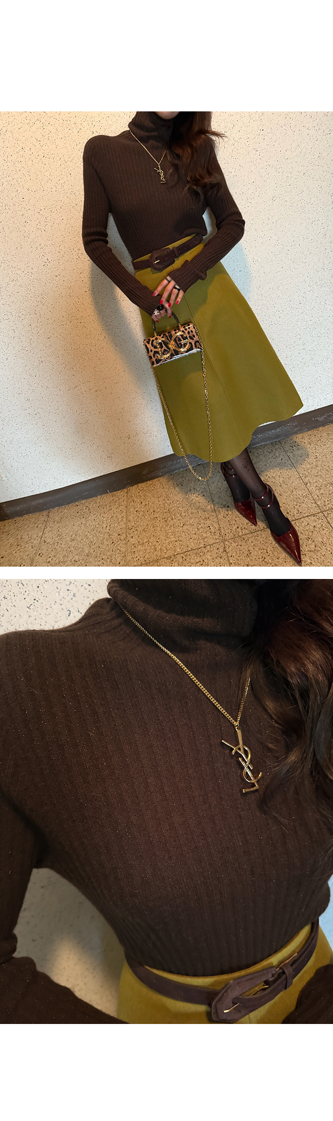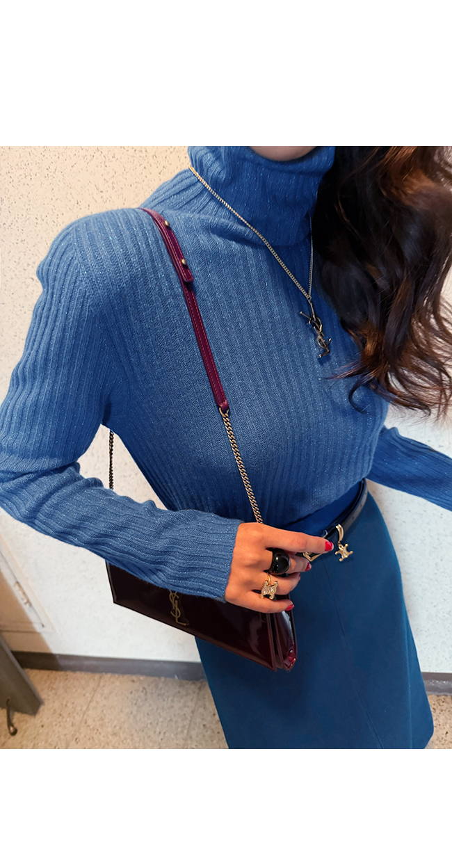 목을 부드럽게 감싸는 폴라 넥 라인은