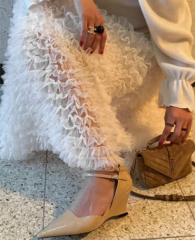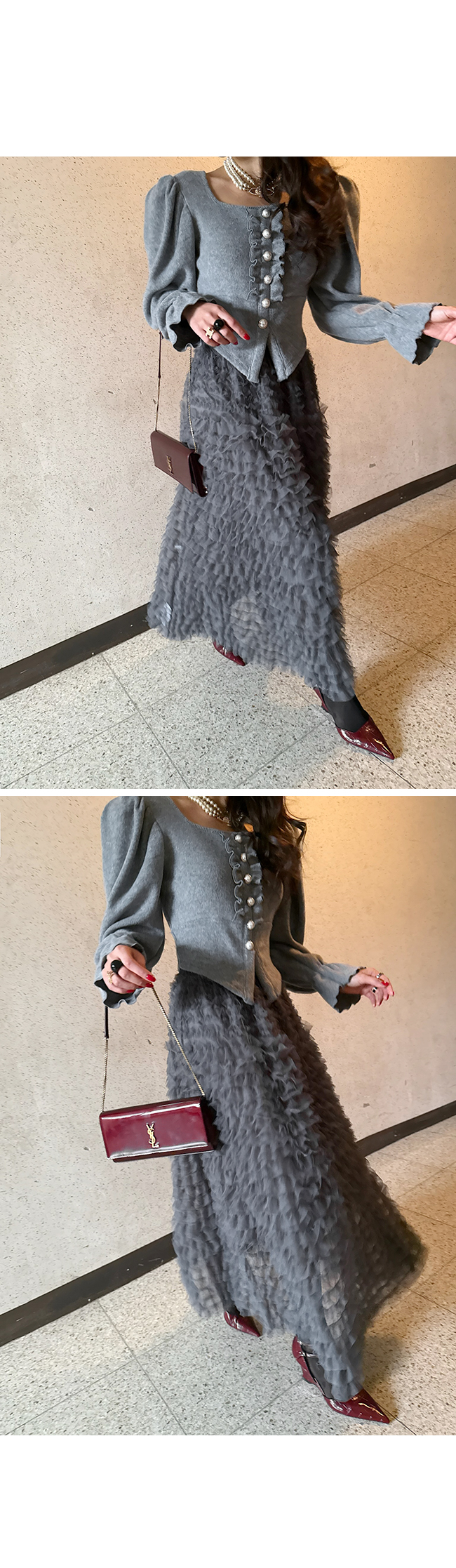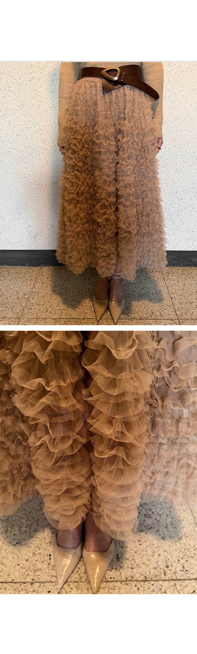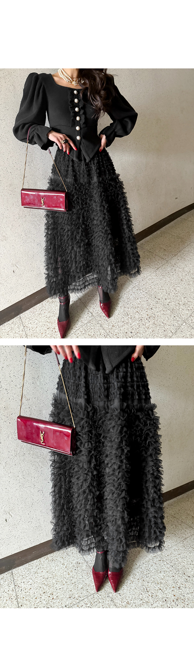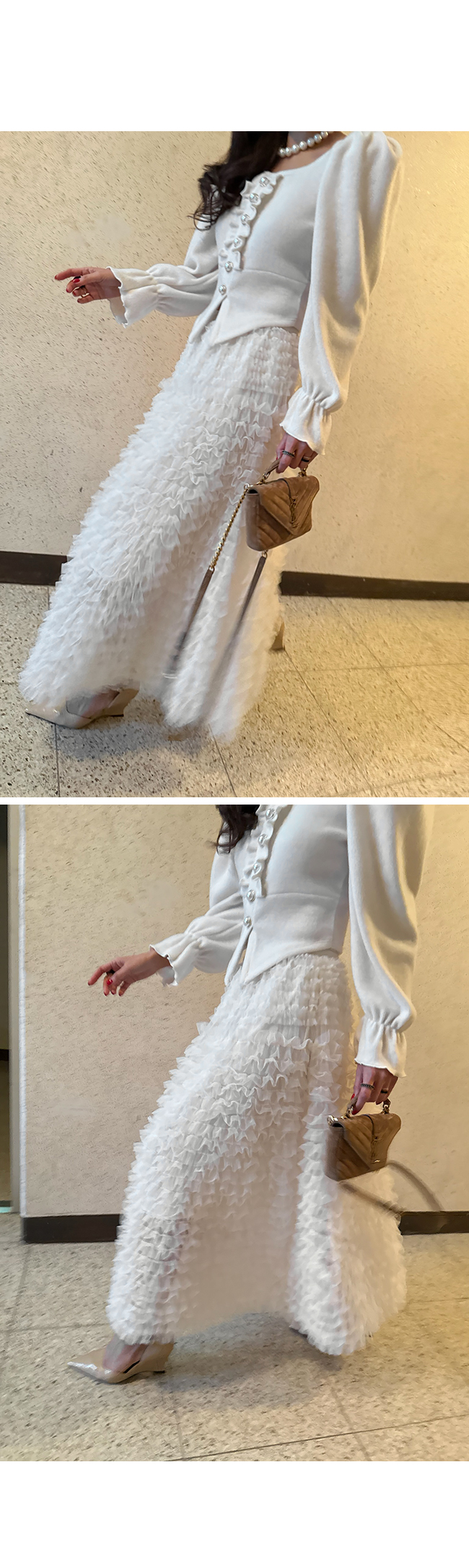 여러 겹으로 쌓인 섬세한 프릴 디테일이