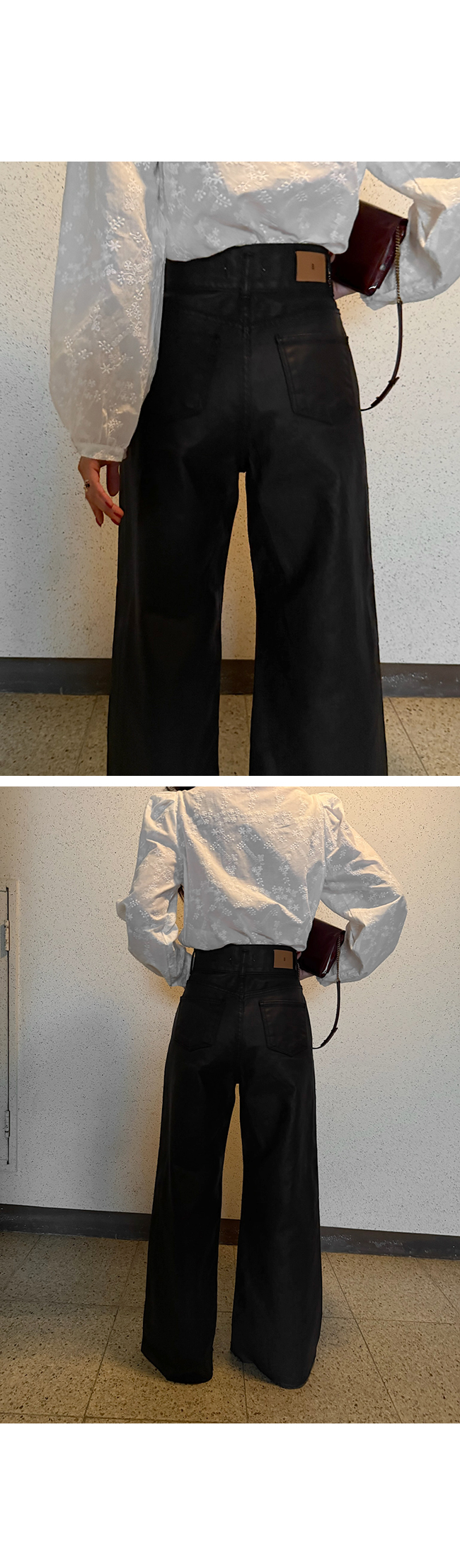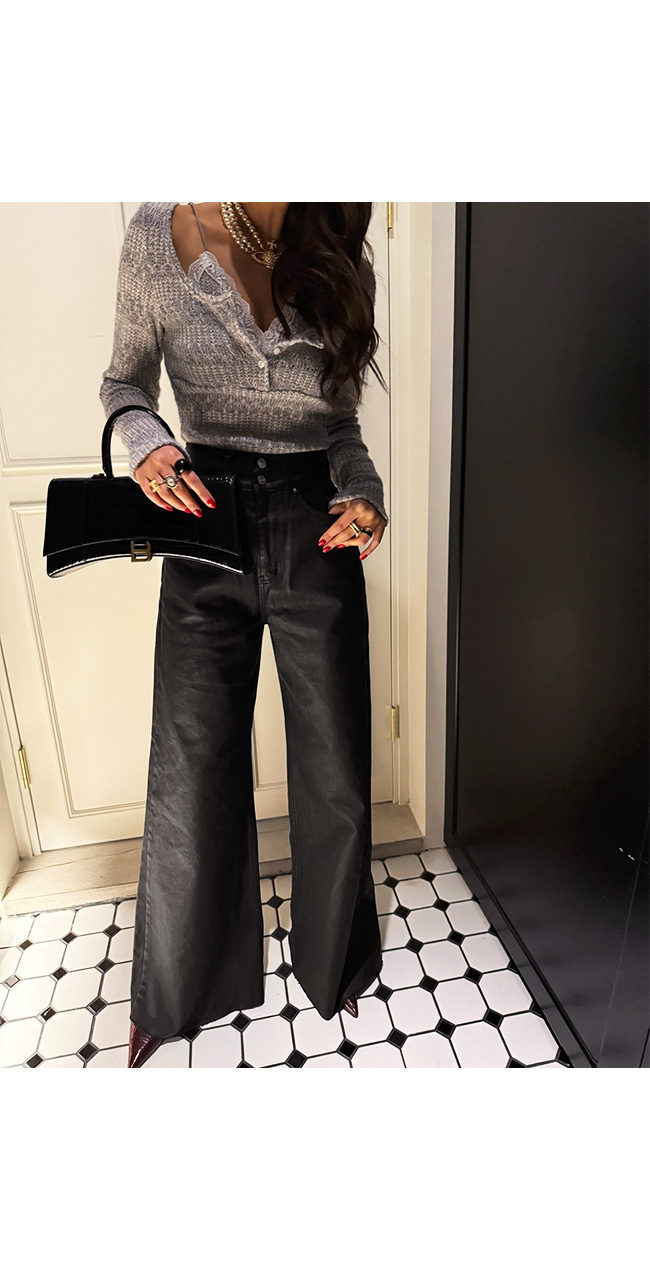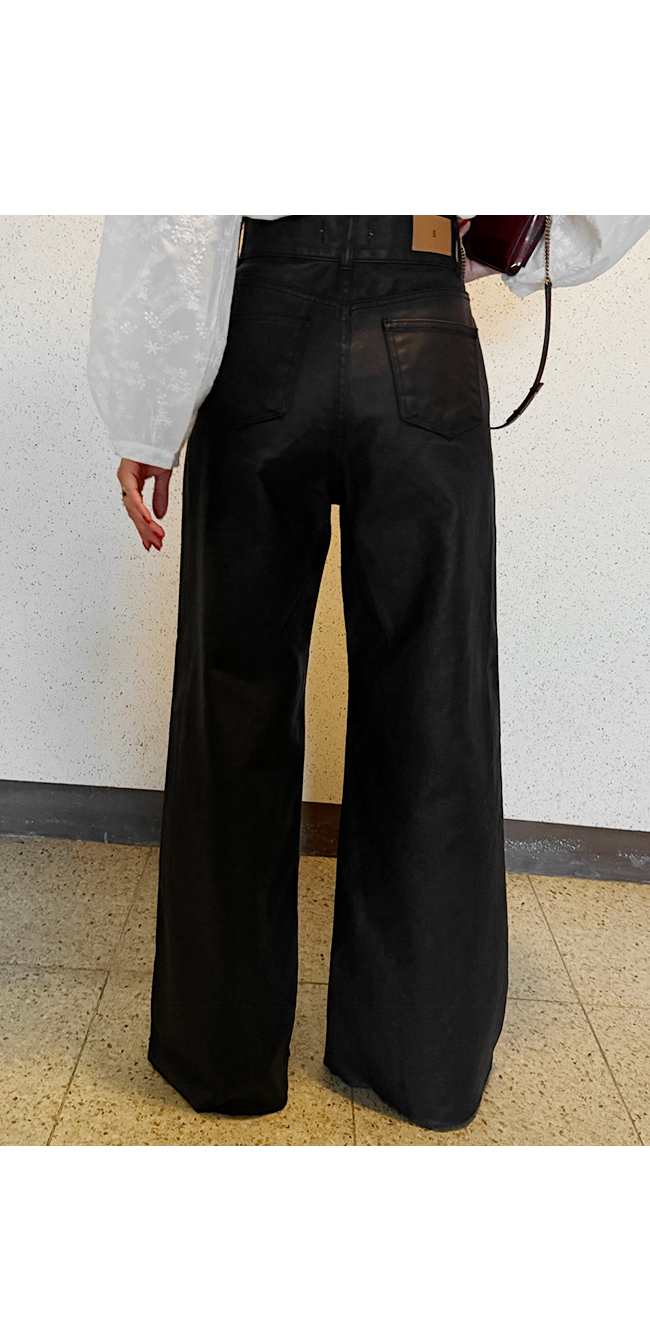 고급스러운 무드의 코팅 데님 팬츠입니다.