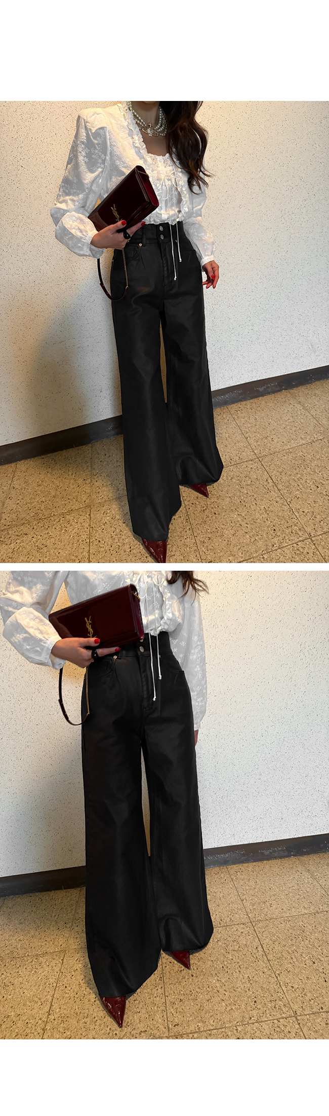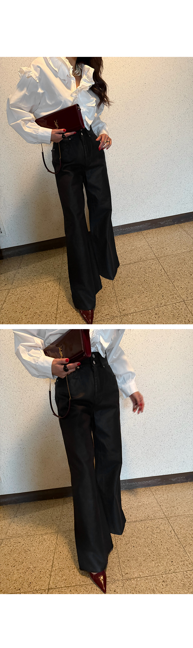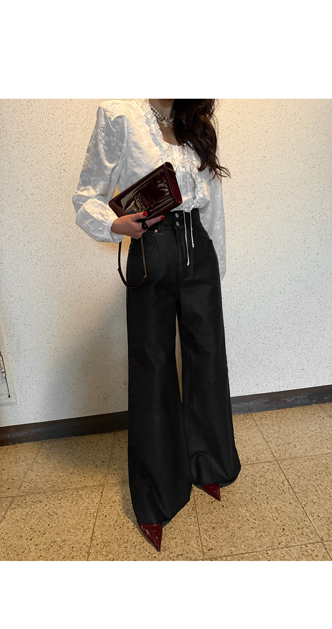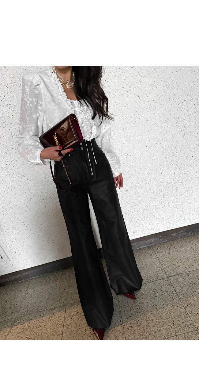 하이웨스트 코팅 데님 팬츠입니다.