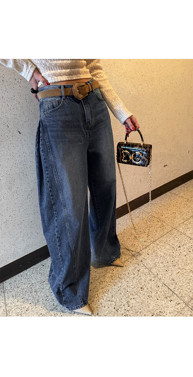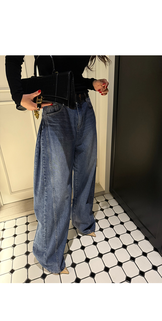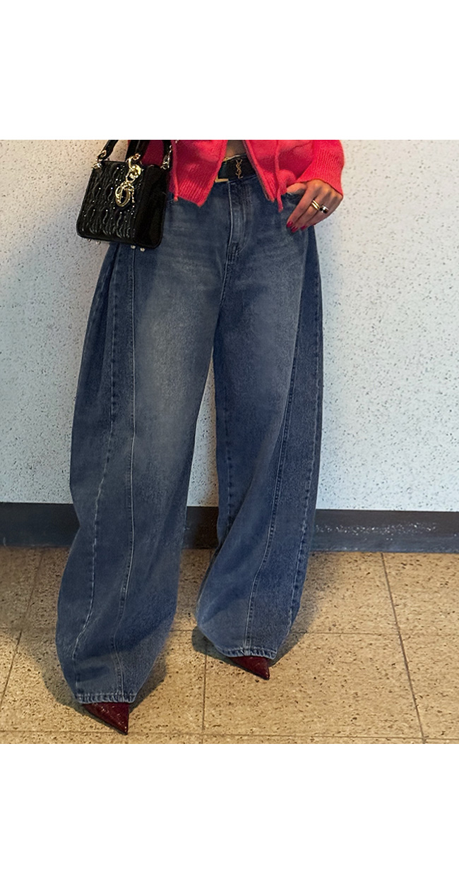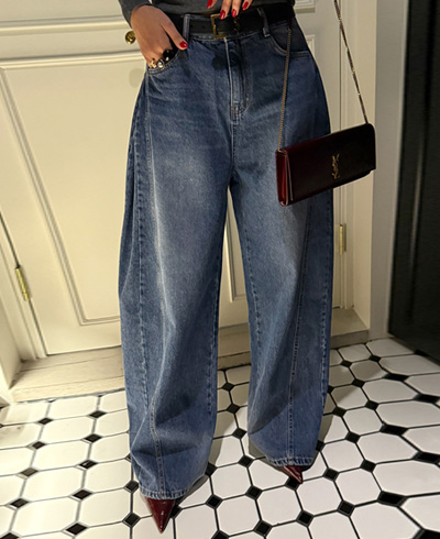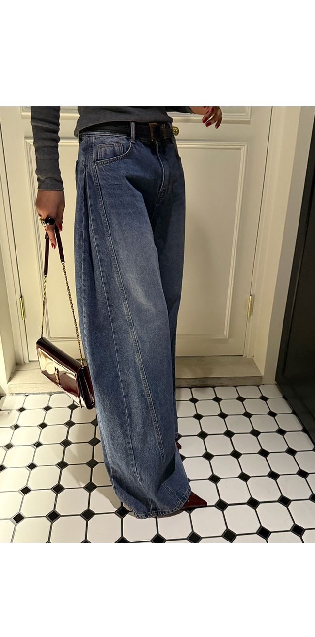 탄탄한 데님 소재로 제작된 와이드 데님 팬츠입니다.