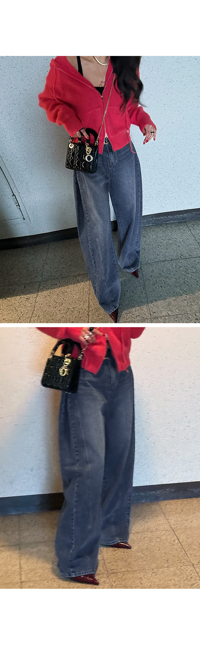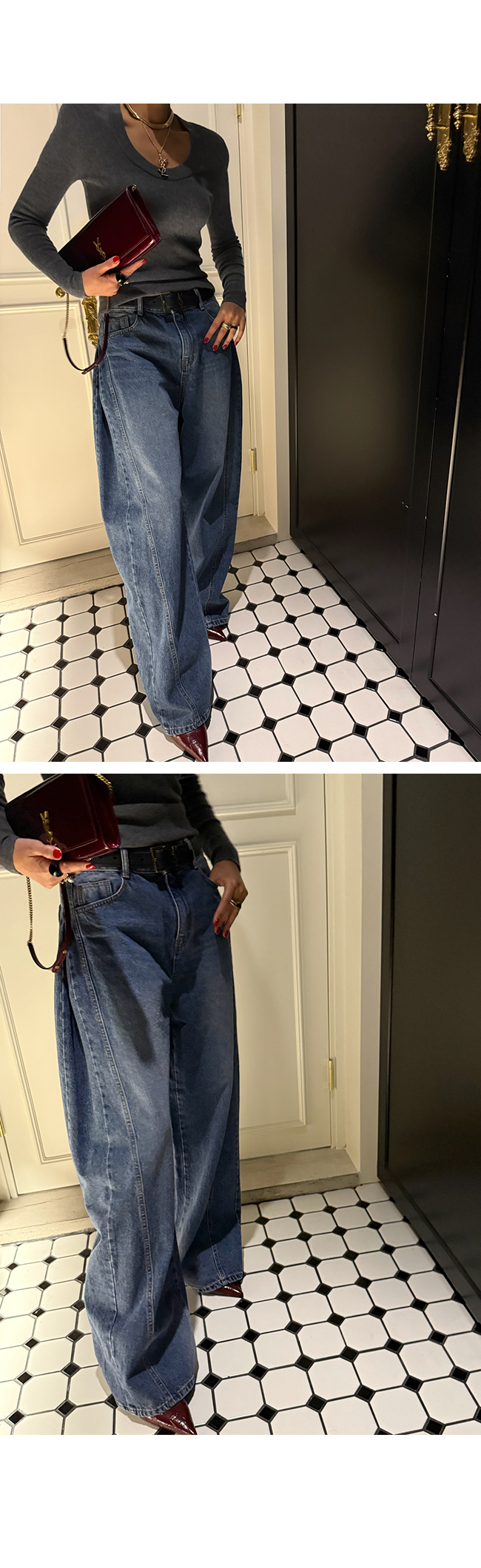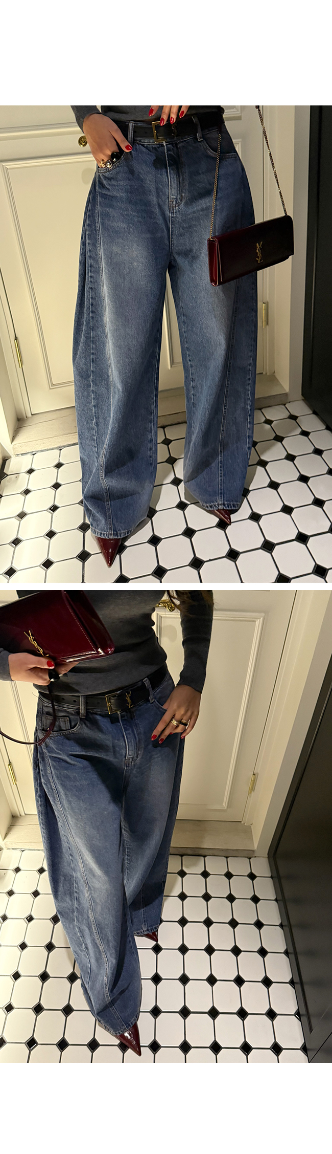 탄탄한 데님 소재로 제작된 와이드 데님 팬츠입니다.