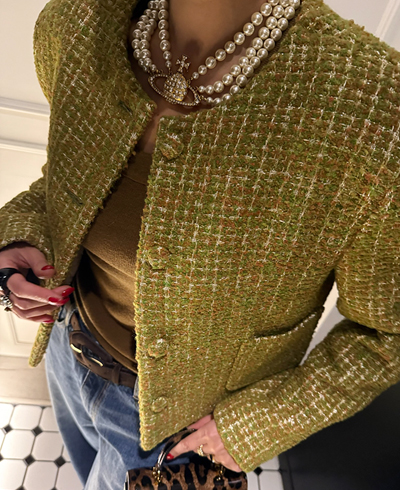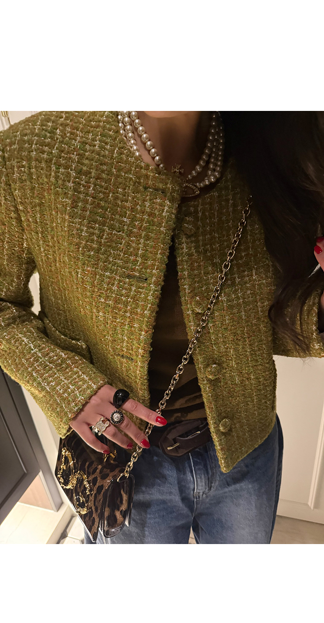 고급스러운 텍스처가 돋보이는 트위드 자켓입니다.