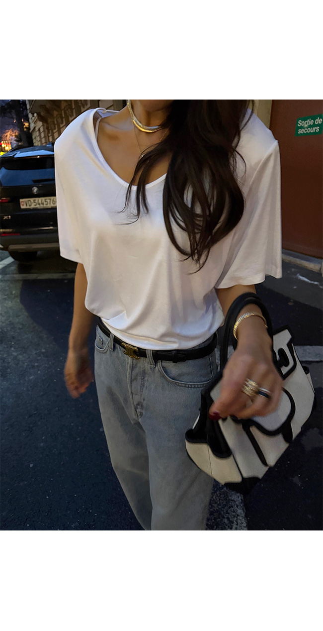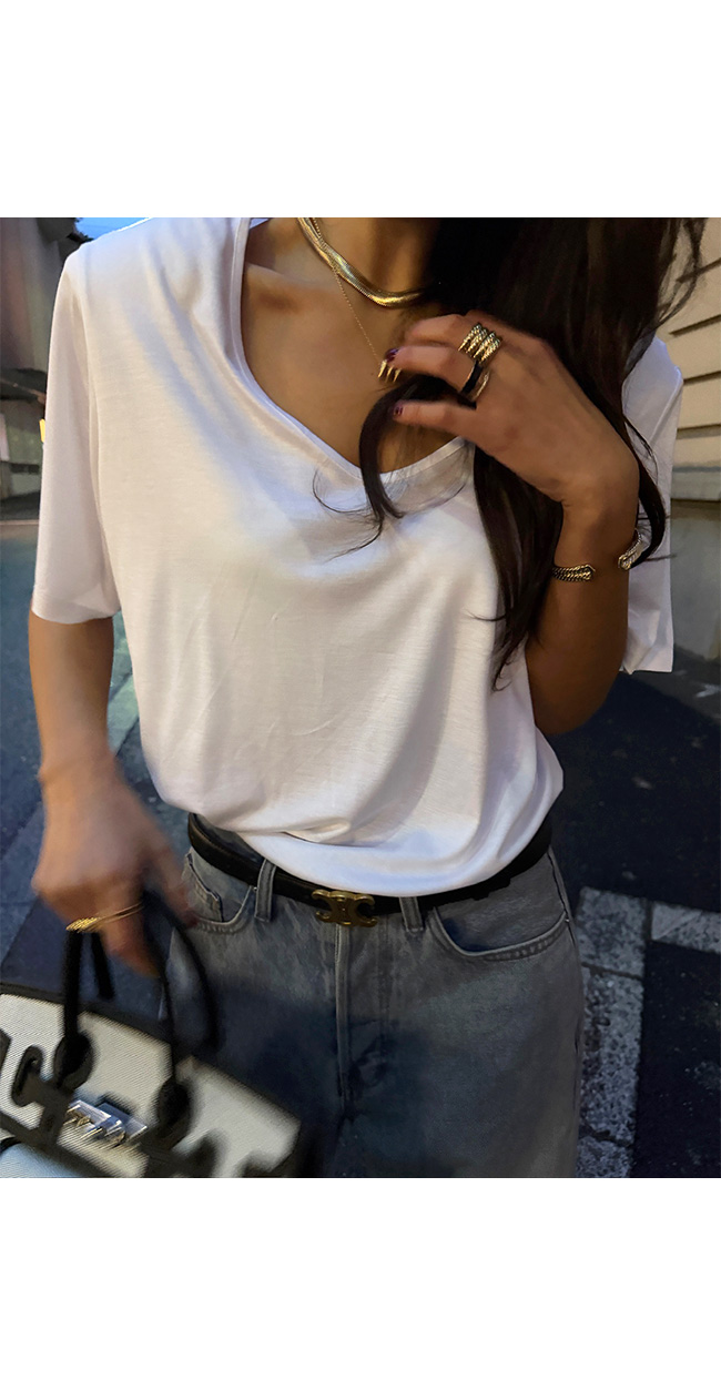 모달 유브이넥 반팔 티셔츠를 소개해드려요.
