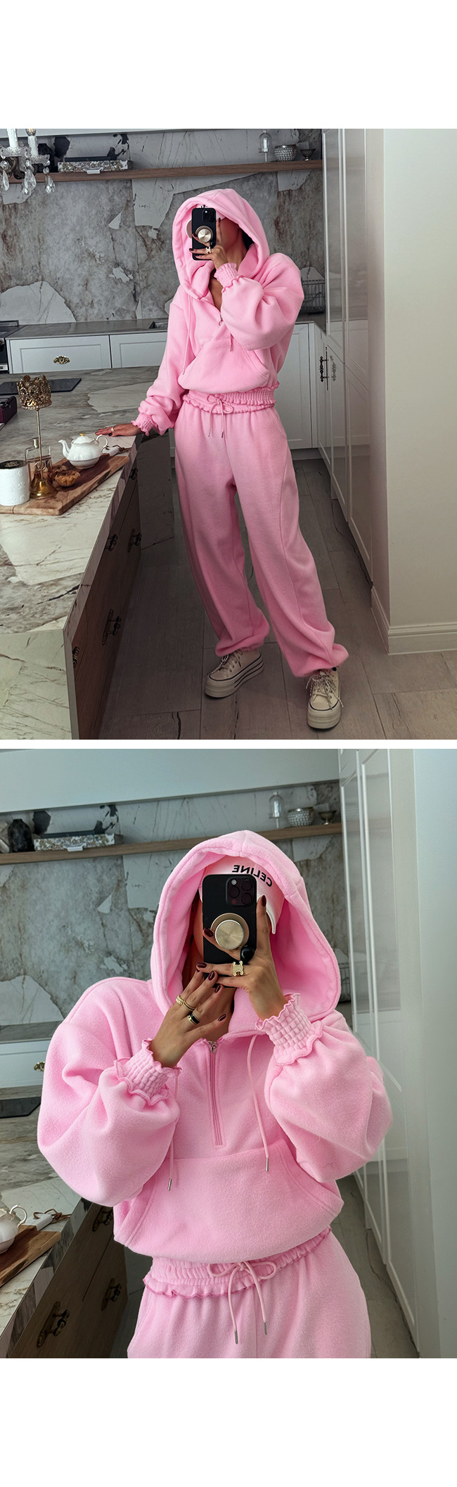 - 안쪽면이 쮸리나 기모가 가공이된 소재감들은 가공 과정에 의해 약간의 먼지가 발생할 수 있으니, 세탁후 입어주세요.