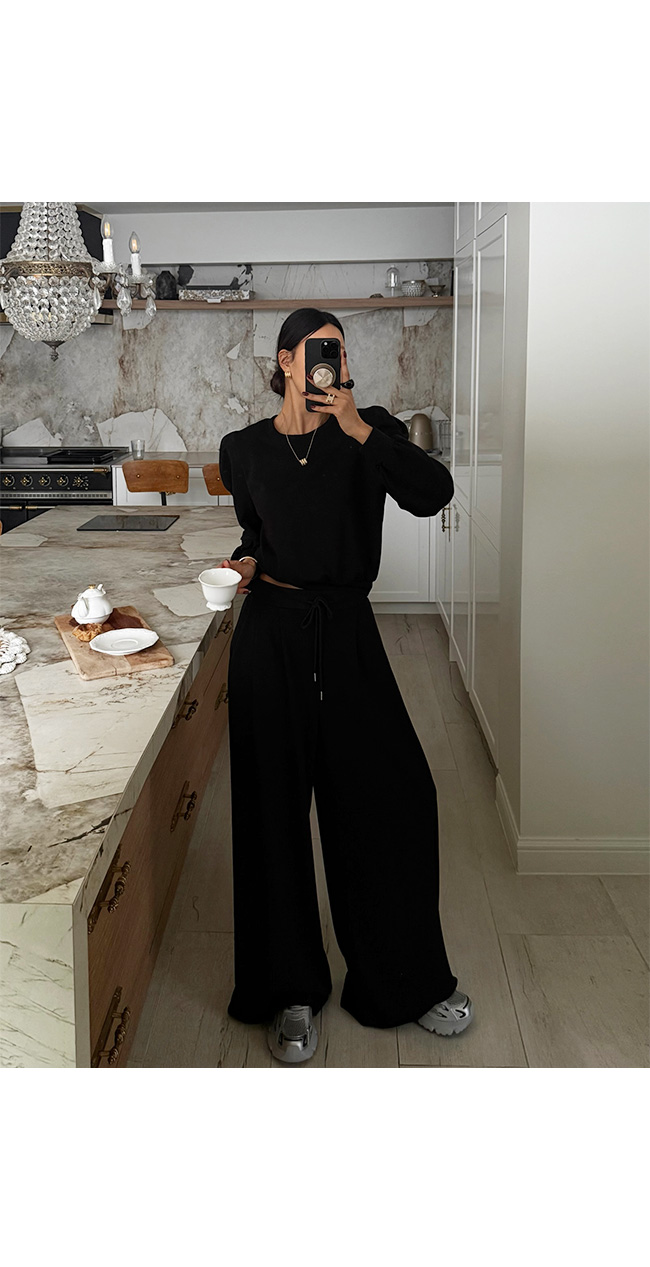 넥라인과 소매, 밑단을 안정감 있게 잡아주어
