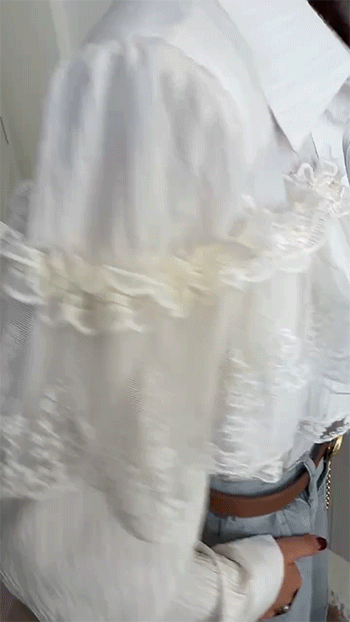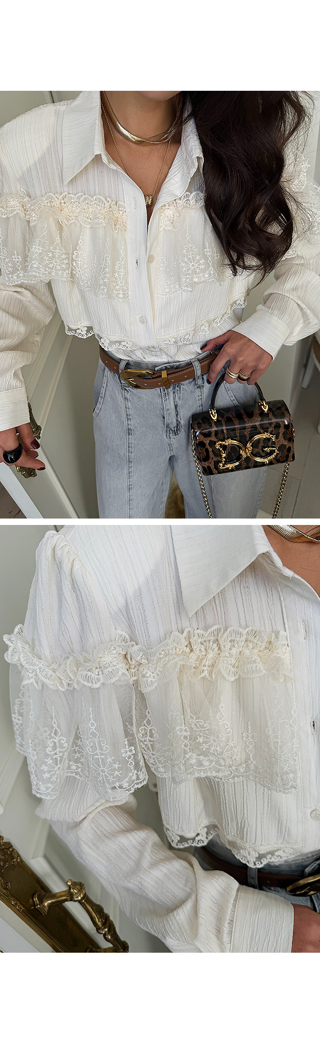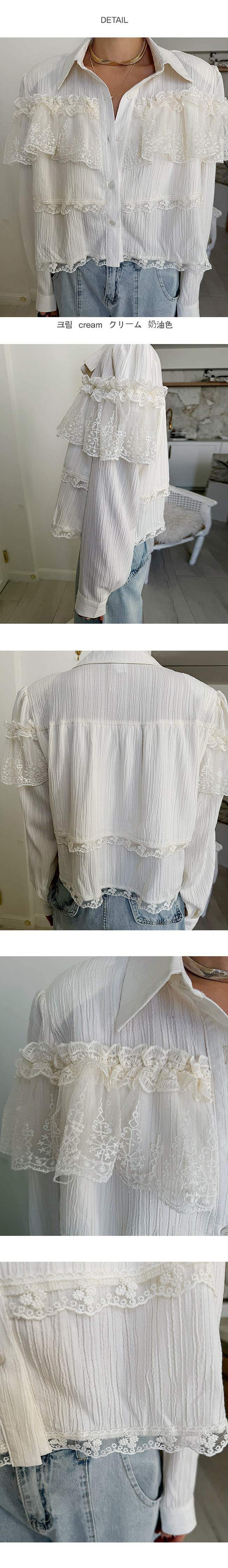바스트 라인을 따라 더해진 레이스 프릴 레이어드 디테일이